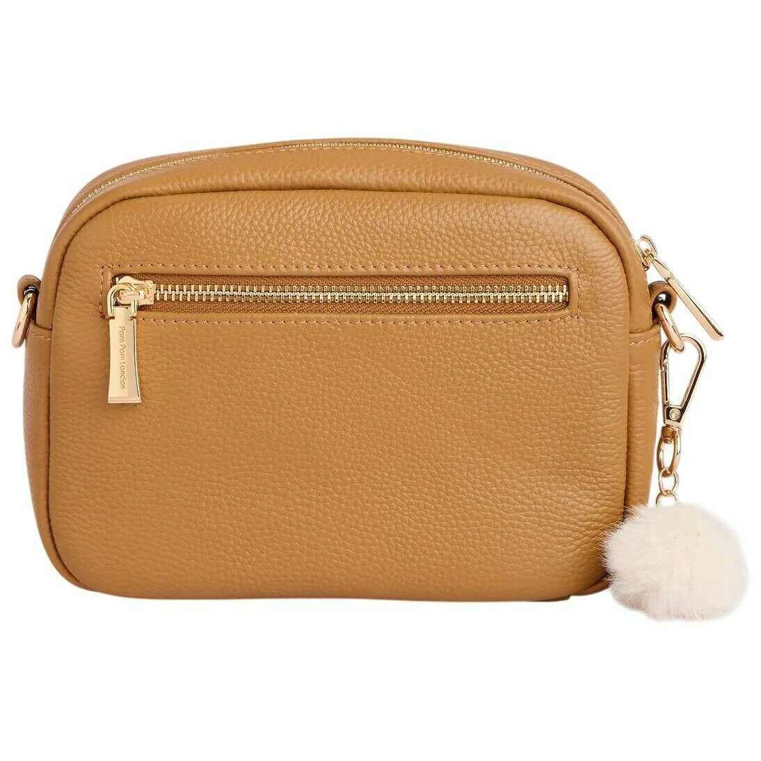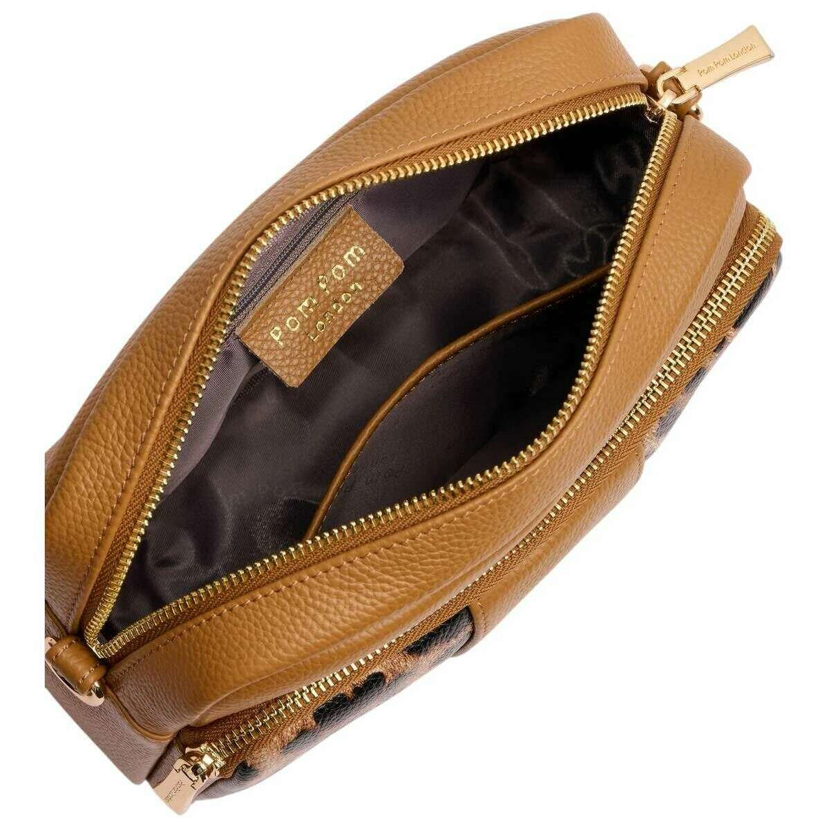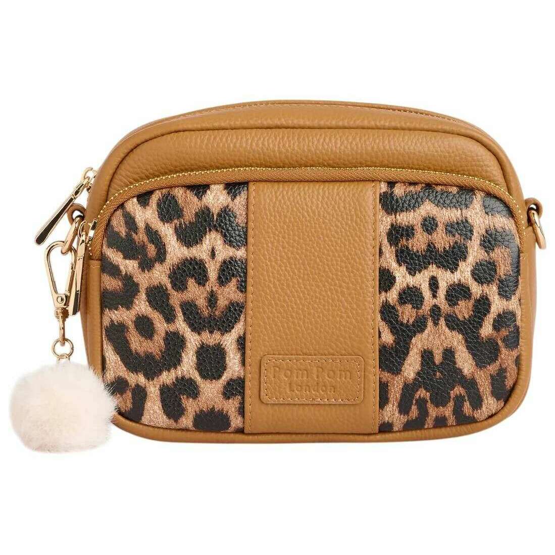 Borsa a tracolla originale con stampa leopardata Pom Pom London - acero marrone chiaro
