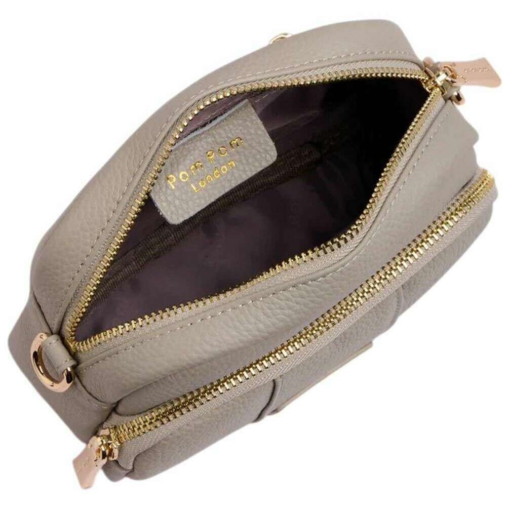 Realizzata al 100% in pelle pieno fiore, questa originale mini borsa a tracolla da donna in pietra del designer Pom Pom London. Misura 14 cm (altezza) x 16 cm (larghezza) x 6,5 cm (profondità). Tutte le borse sono complete di confezione pom pom london. La mini borsa a tracolla originale Pom Pom London - Stone ha un design piccolo che le consente di passare senza sforzo dalle uscite casual di tutti i giorni agli eventi più formali, rendendola un punto fermo versatile in ogni guardaroba. Ogni pezzo è realizzato a mano individualmente, conferendogli una finitura lussuosa che riflette l'impegno del marchio per l'artigianato di qualità. Progettato pensando alla praticità, può contenere comodamente gli oggetti quotidiani garantendo allo stesso tempo a chi lo indossa di rimanere elegante e organizzato. La borsa è dotata di una tracolla regolabile in pelle abbinata che si estende fino a 123 cm, consentendo una vestibilità comoda e personalizzabile. All'interno, gli utenti troveranno una tasca con cerniera che crea un semplice sistema per l'organizzazione. Esternamente, tre scomparti aggiuntivi con cerniera offrono un comodo accesso agli oggetti necessari di frequente. Una doppia base in pelle rinforzata ne aumenta la durata, aiutando la borsa a mantenere la sua forma nel tempo. Completando il design, l'hardware dorato caratteristico di Pom Pom London aggiunge un tocco raffinato, conferendo alla borsa una finitura elegante e iconica.
