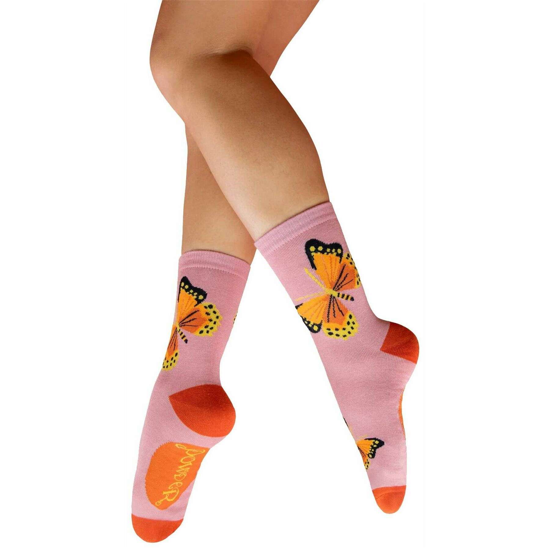 Calzini alla caviglia con bellissime farfalle color cipria - rosa/arancione/giallo