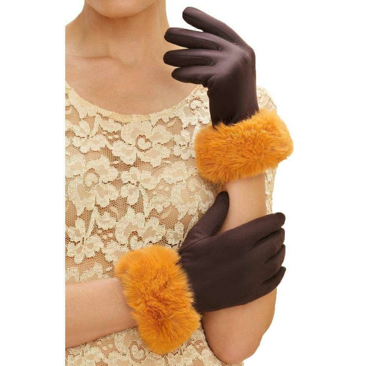 Guanti bettina in polvere - marrone cioccolato/senape giallo