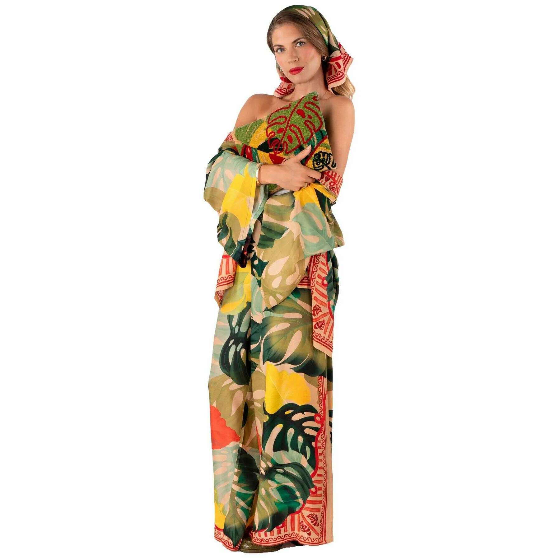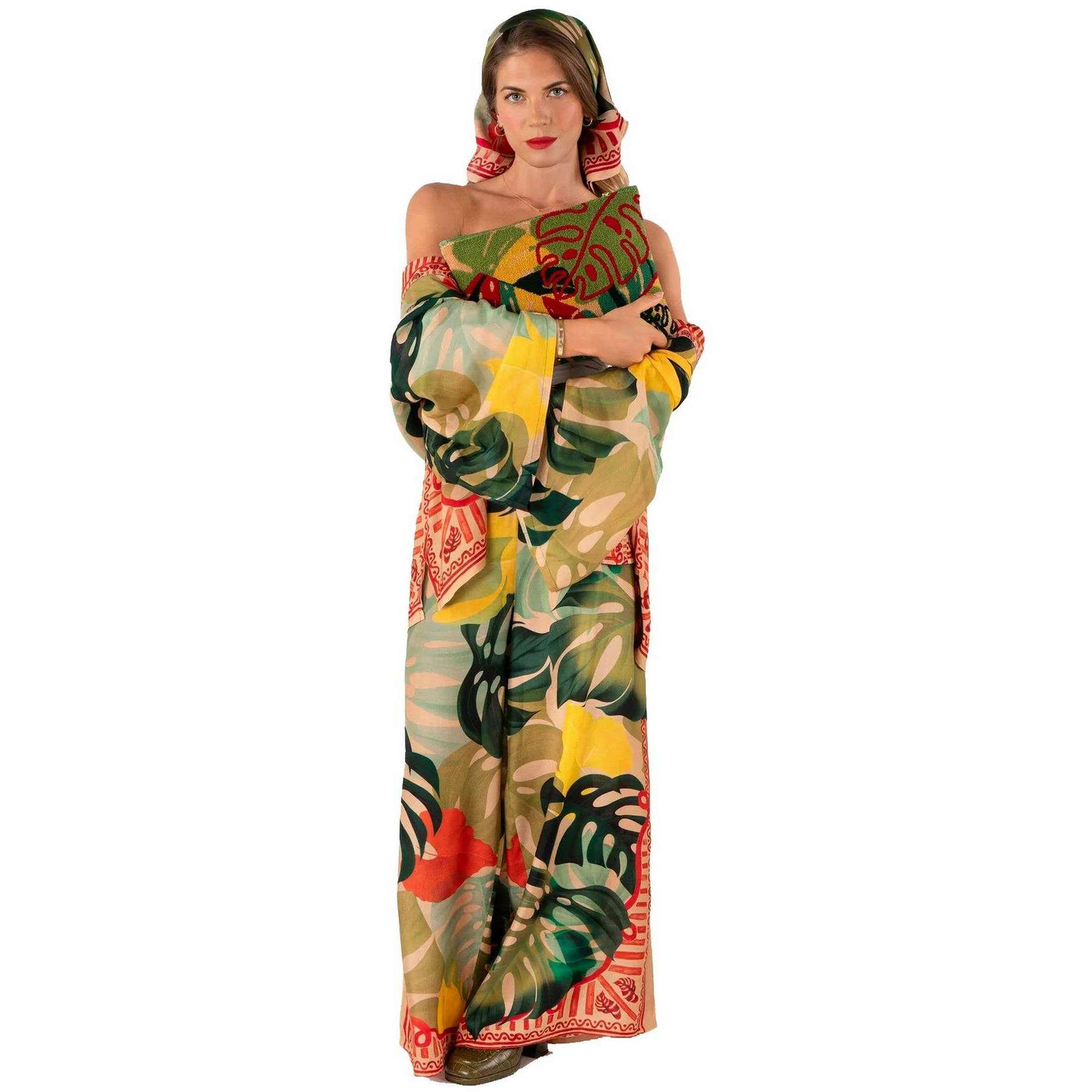 Custodia in lana con foglie esotiche in polvere - Rosso/Verde/Beige