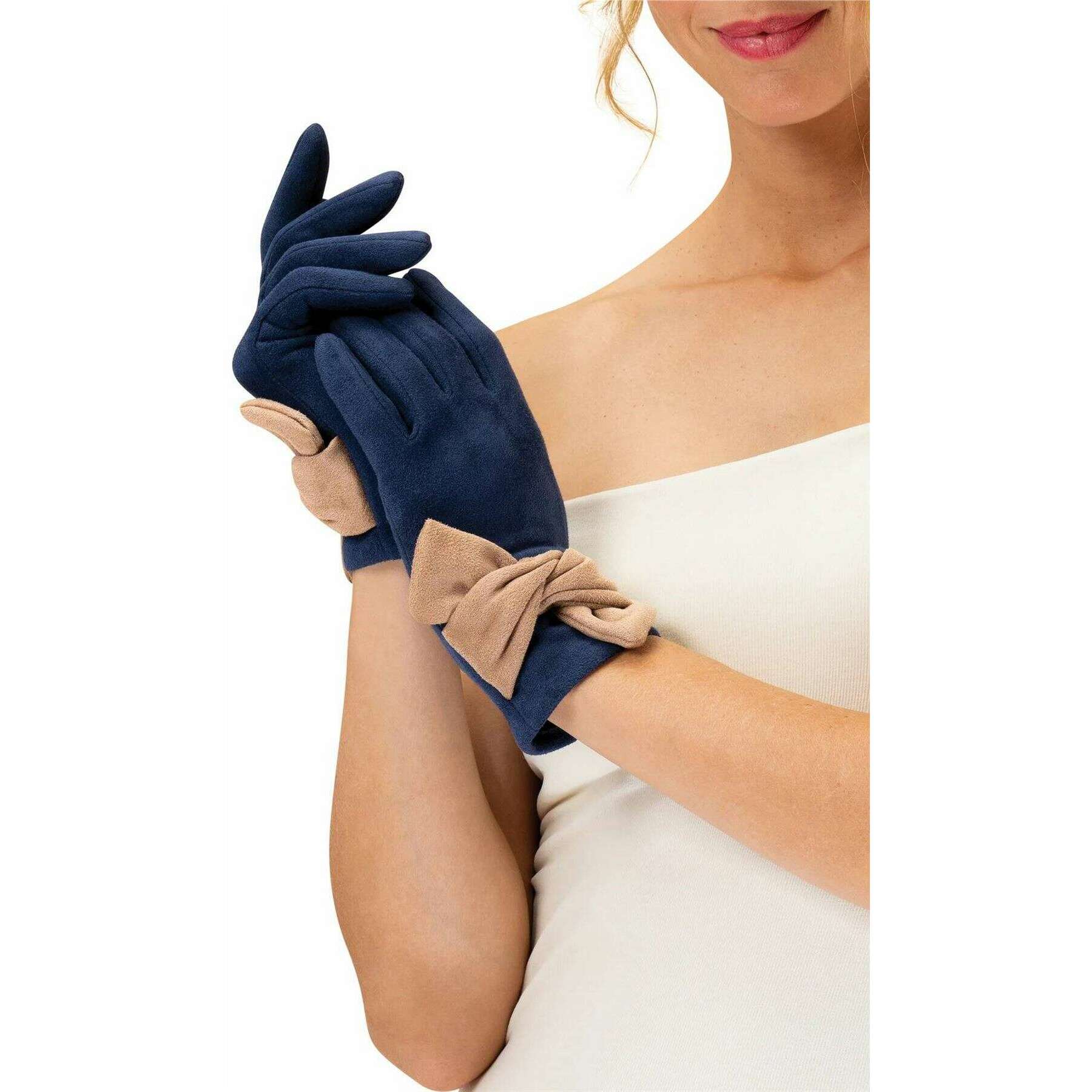 Questi guanti Henrietta per le donne sono modellati dalla polvere di marca in colore blu e sono realizzati con poliestere al 90% e spandex al 10%. Misura 13,5 cm (altezza) x 9 cm (larghezza). Anche i guanti beige marinai/taupe sono progettati in un motivo semplice, si consiglia di lavarsi a mano solo per mantenere questi guanti in buone condizioni. Tutti i guanti sono completi di etichette in polvere. I guanti Henrietta in polvere - Navy/Taupe Beige sono il paio di guanti glamour perfetti per finire il tuo abbigliamento invernale. I dettagli dell'arco e i colori contrastanti danno un look contemporaneo che aggiunge un tocco lussuoso e glamour. Il finto materiale in pelle scamosciata garantisce la durata pur essendo vegana, cosa potresti voler di più.