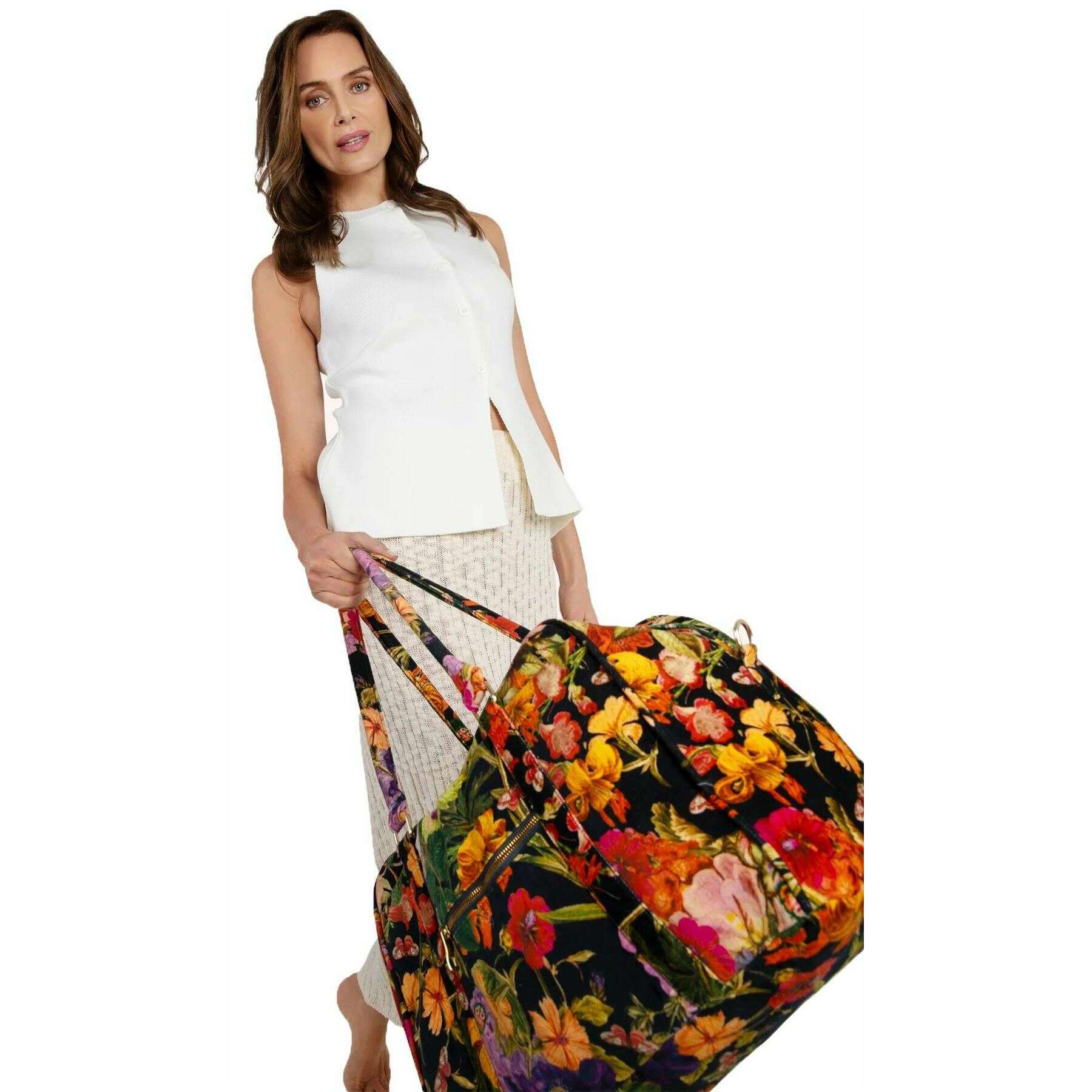 La borsa da fine settimana di Luxe Posy da donna con la polvere di marca è realizzata con velluto di cotone al 100% ed è presentata in marina. Misura 42 cm (altezza) x 31 cm (larghezza) x 18 cm (profondità). Tutte le borse sono complete di etichette in polvere. The Powder Posy Luxe Weekender Bag - Navy è una borsa pratica e diversificata perfetta per i fine settimana o viaggiare. Lo splendido design aggiunge un timore senza tempo e le maniglie del trasporto gemello e la cinghia lungo di spalla regolabile lo rendono un carry comodo. Questo pezzo offre una conservazione ottimale con il suo grande vano principale e la tasca esterna per tutti i tuoi elementi essenziali più piccoli.