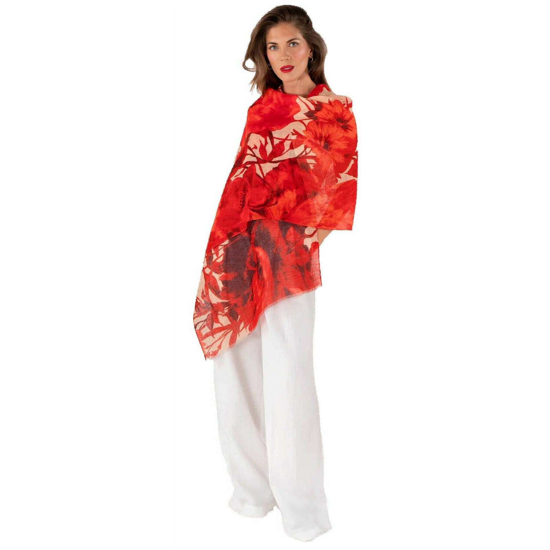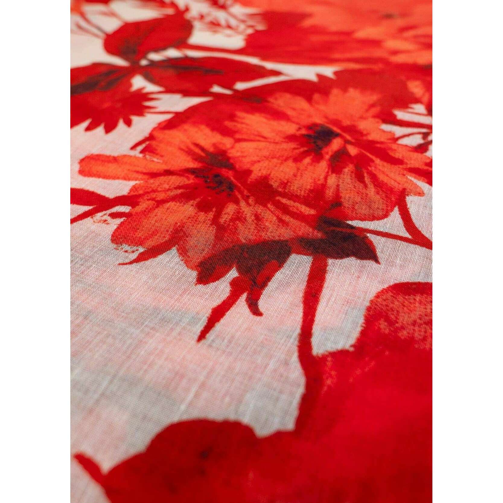 Sciarpa in cotone e lino Powder Rouge Blooms - Rosso/Beige