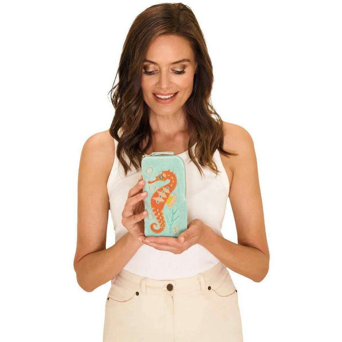 La cassa di occhiali da sole in velluto marino da donna di questa donna è stata realizzata con velluto in poliestere al 100%, presente in un colore blu e proviene dalla polvere di marca. Tutti i casi di accessori sono completi con un sacchetto regalo in polvere gratuito. Il caso di occhiali da sole in velluto scintillante in polvere - Aqua Blue livellerà il tuo gioco di occhiali da sole, mantenendoli al sicuro e protetti con stile. Il design ricamato a mano porterà un tocco di divertimento al tuo giorno. Oltre a Beautiful, il design è anche pratico con una chiusura zippata semplicistica ma sicura, che ti consente di accedere ai tuoi occhiali da sole per quando ne hai bisogno.