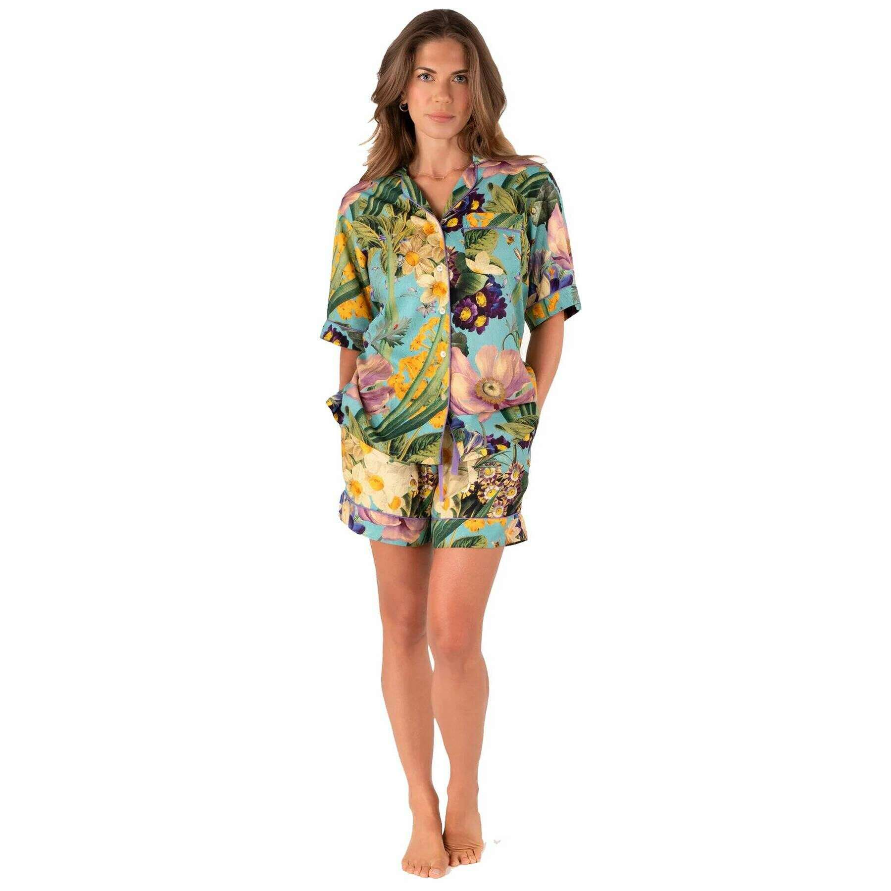 Pigiama corto Powder Spring Flora - Blu/Verde/Giallo