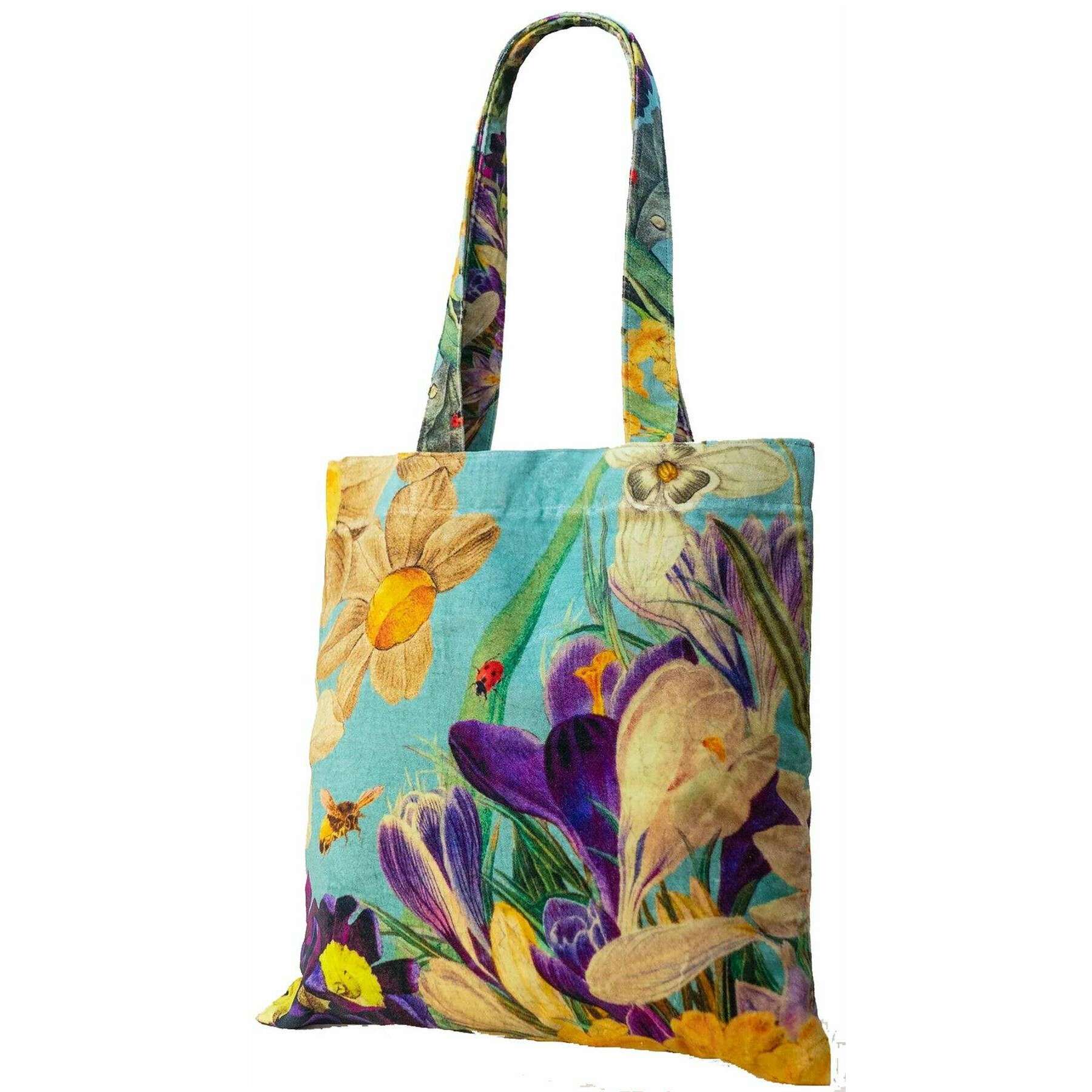 Borsa tote in velluto Flora Powder Spring - Blu/Viola/Beige