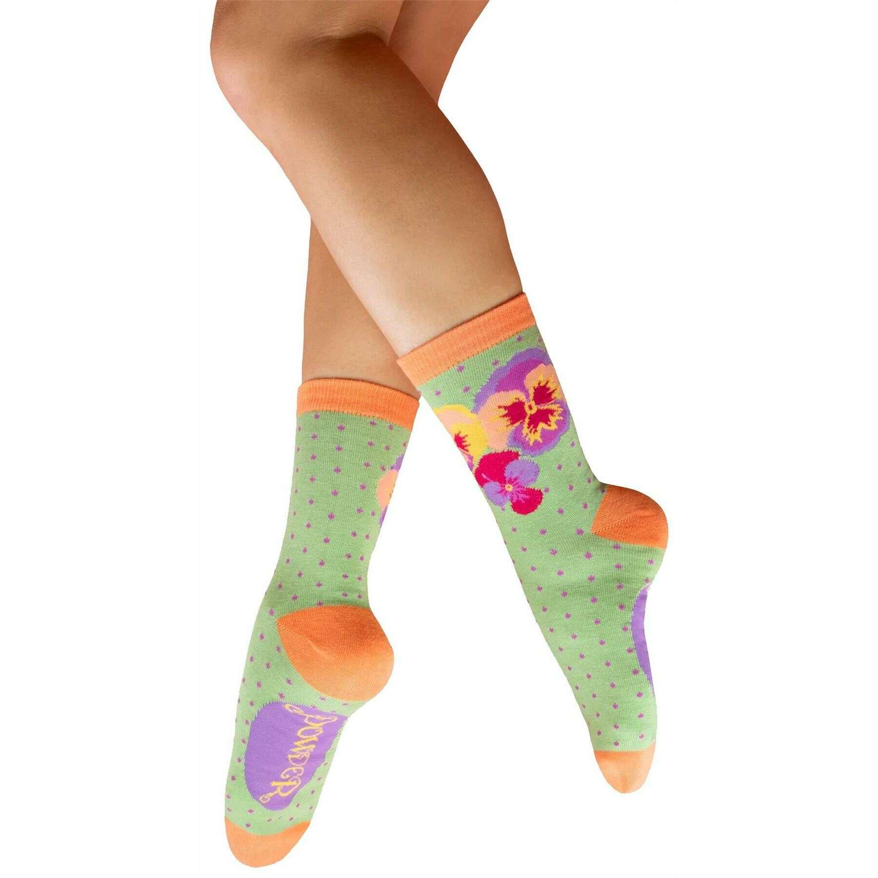 Calzini alla caviglia Powder Spring Pansies - Verde/Arancione/Viola