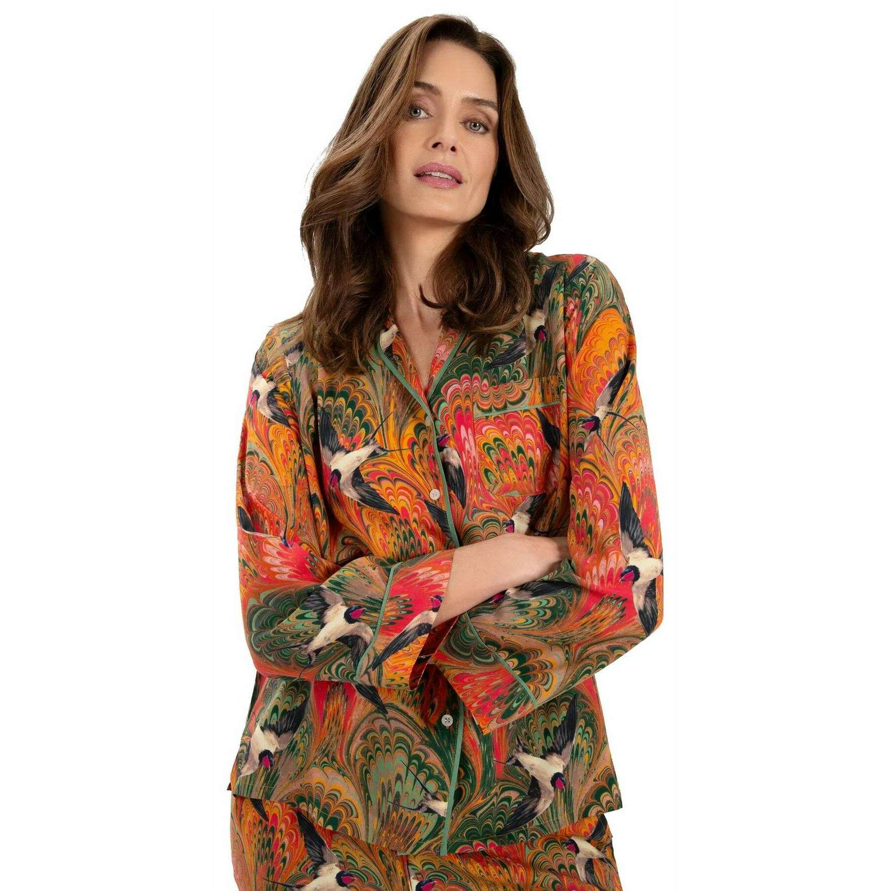 Designer Powder ti ha portato il pigiama viscoso al 100% di queste donne usando toni arancioni. Anche i pigiami arancioni sono progettati in uno schema unico, si consiglia di lavarsi in lavatrice a 30 gradi per mantenere questi pigiami in buone condizioni. Tutti i pigiami sono completi di etichette in polvere. Polveri SUPERSOFT MARCHIT SWALLOWS PAJAMA - Orange presenta una combinazione di due stampe con rondini sparsi per un design psichedelico che è vibrante e divertente, perfetto per le serate accoglienti. Questi accattivanti PJ con pantaloni lunghi e un top a maniche lunghe creano un aspetto femminile audace che ti piacerai e vorrai indossare tutto il tempo.