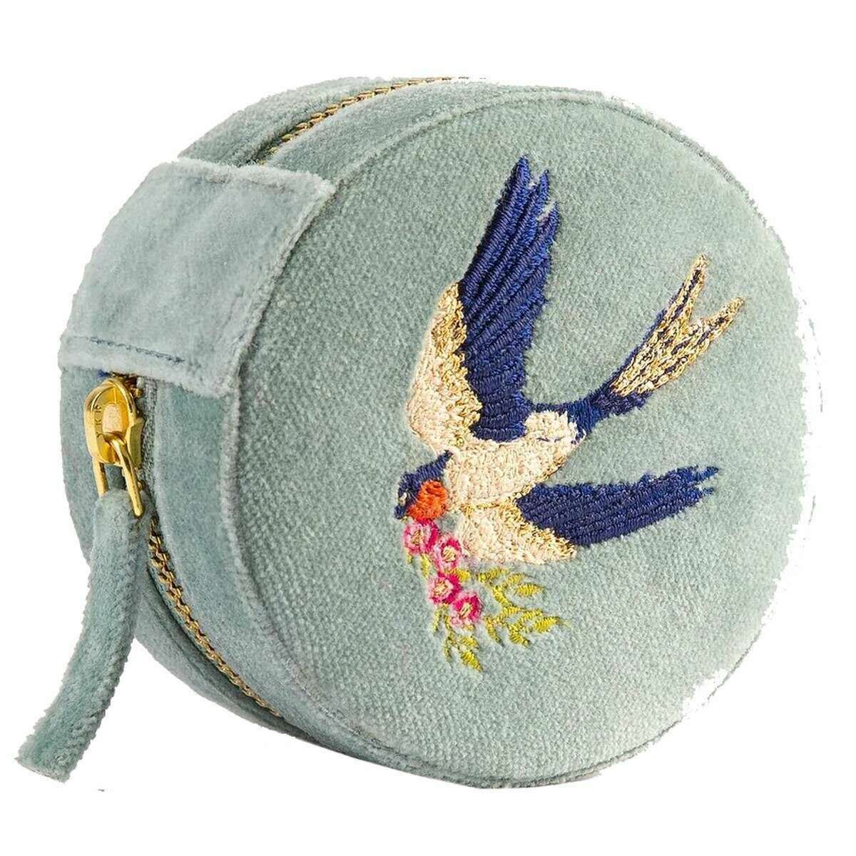 Swallow in polvere inzuppamento rotondo di gioielli in velluto - blu ghiaccio