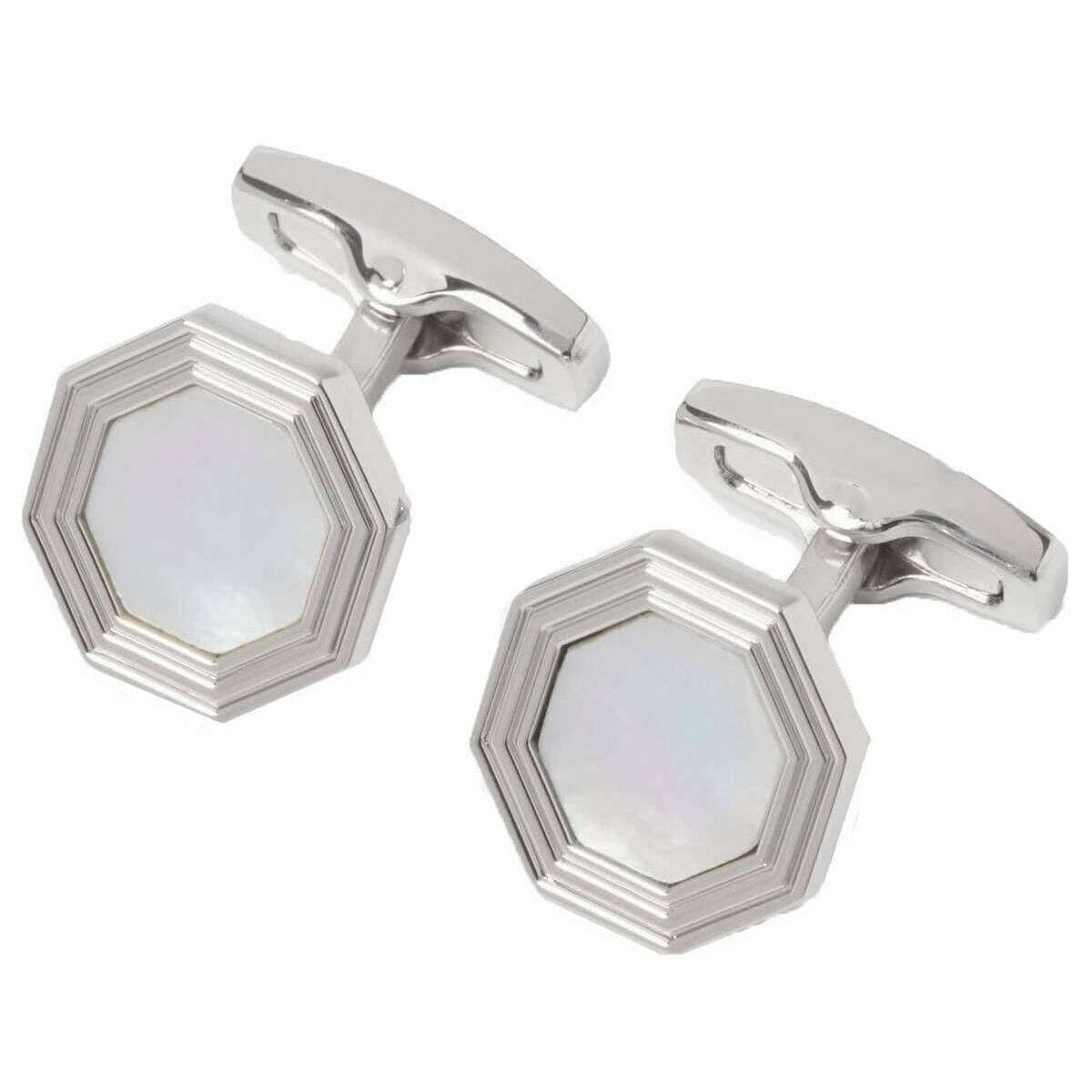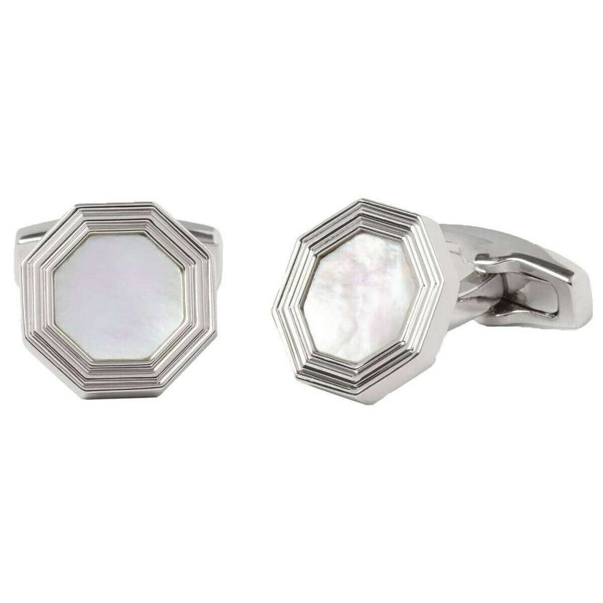 Il designer Simon Carter ti ha proposto questi gemelli da uomo in metallo rodiato e madreperla utilizzando i toni bianco/argento. Tutti i gemelli sono forniti completi di confezione Simon Carter. I gemelli Simon Carter Monty in madreperla - Bianco/Argento presentano un design della cornice ottagonale con una pietra madreperla. Questo set di gemelli è il tocco finale perfetto per ogni occasione formale ed è un fantastico regalo per tutti i gentiluomini!