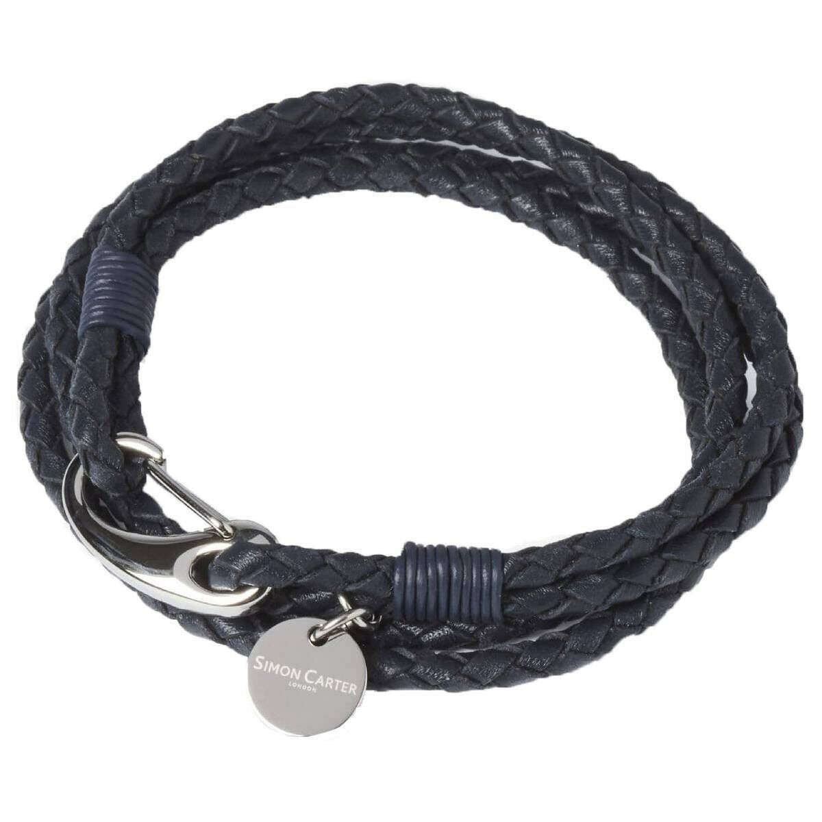 Questo braccialetto padstow da uomo è realizzato dal marchio Simon Carter in colore blu ed è realizzato in acciaio inossidabile e pelle. Tutti i braccialetti sono completi di confezione Simon Carter. Il bracciale Simon Carter Padstow - Blu navy/Argento è perfetto da indossare tutti i giorni in modo casual. Questo braccialetto presenta un design intrecciato blu alla moda, che avvolge il tuo polso due volte. Una chiusura a moschettone assicura che questo braccialetto rimanga saldamente al polso!
