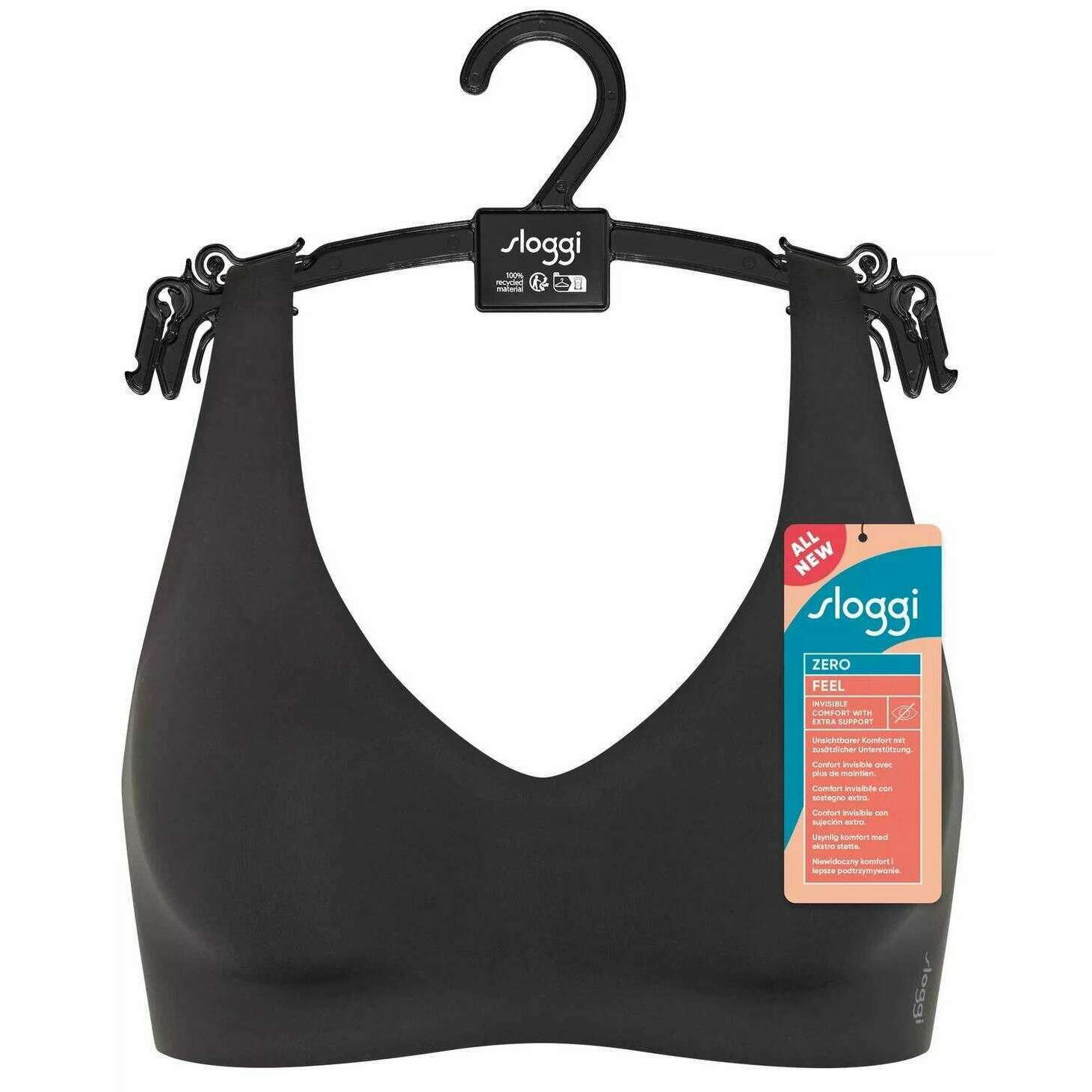 Il designer Sloggi ti ha portato questa biancheria intima da donna in 76% poliammide e 24% elastan utilizzando i toni del nero. Anche la biancheria intima nera è progettata in un modello semplice. Si consiglia di lavare in lavatrice a 30 gradi e di non asciugare in asciugatrice per mantenere la biancheria intima in buone condizioni. Tutta la biancheria intima viene fornita completa di confezione sloggi. Il reggiseno Sloggi Zero Feel Soft - Nero presenta dettagli imbattibili che offrono comfort e stile ottimali per un intimo che non vorrai toglierti. Questa bralette ha un supporto medio con bordi senza cuciture che garantiscono un look completamente invisibile sotto qualsiasi outfit, con spalline regolabili e chiusura con gancetti per personalizzarla per adattarla al meglio. Realizzato con materiali riciclati sostenibili che sono traspiranti, assorbono l'umidità, leggeri e hanno elasticità a 360 gradi per piena libertà di movimento qualunque attività tu stia svolgendo. Grazie all'elasticità, questo capo non penetra, non pizzica né lascia segni rossi, rendendolo il più comodo da indossare per tutto il giorno, tutti i giorni.