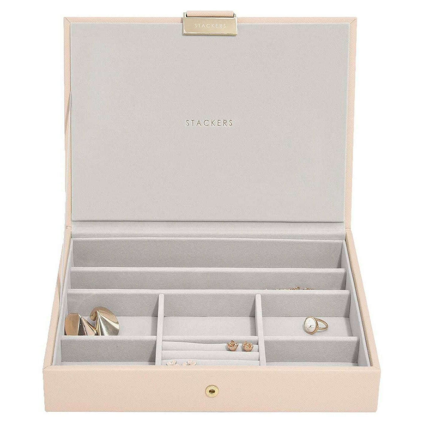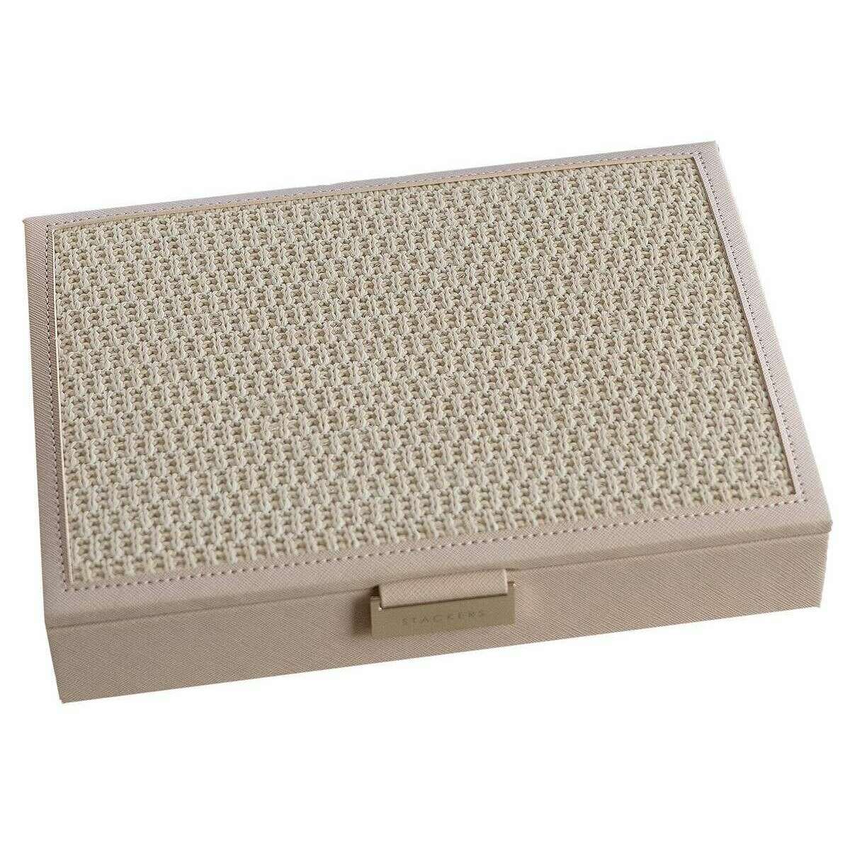 Utilizzando ecopelle rosa e velluto, questo classico coperchio per portagioielli di Stackers è perfetto per le donne e un must. Misura 4,7 cm (altezza) x 25 cm (larghezza) x 18 cm (profondità). Tutti gli astucci per gioielli sono completi di confezione impilabile. Il coperchio del portagioielli classico Stackers - Rafia rosa cipria presenta un bellissimo design in rafia rosa. Questo coperchio per portagioielli è perfetto per riporre tutti i tuoi gioielli! Viene fornito completo di sezioni di diverse dimensioni per anelli, orecchini, bracciali e collane.