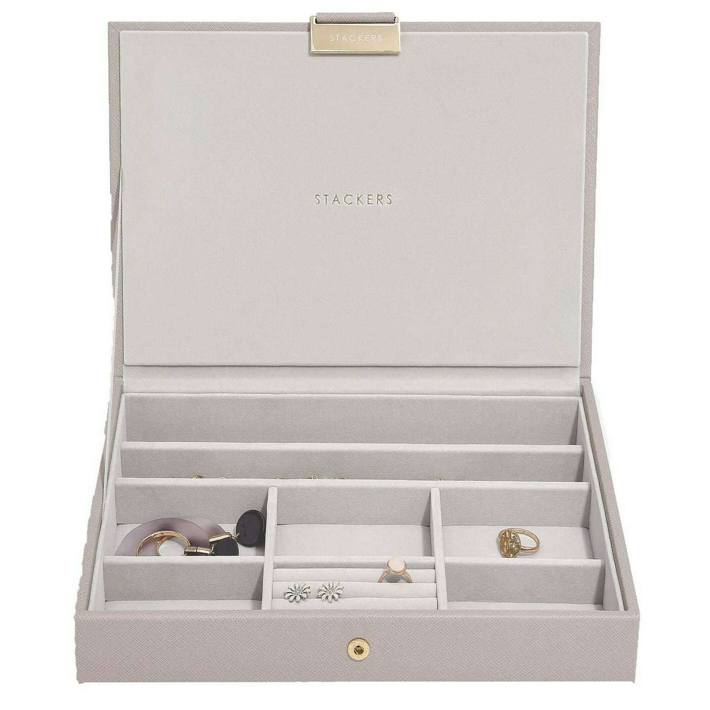 Perfetto per le donne è questo classico coperchio per portagioie in rafia color talpa Stackers, anch'esso realizzato in ecopelle e velluto. Misura 4,7 cm (altezza) x 25 cm (larghezza) x 18 cm (profondità). Tutti gli astucci per gioielli sono completi di confezione impilabile. Il coperchio del portagioielli classico Stackers - Rafia color talpa presenta un bellissimo design in rafia color talpa. Questo coperchio per portagioielli è perfetto per riporre tutti i tuoi gioielli! Viene fornito completo di sezioni di diverse dimensioni per anelli, orecchini, bracciali e collane.
