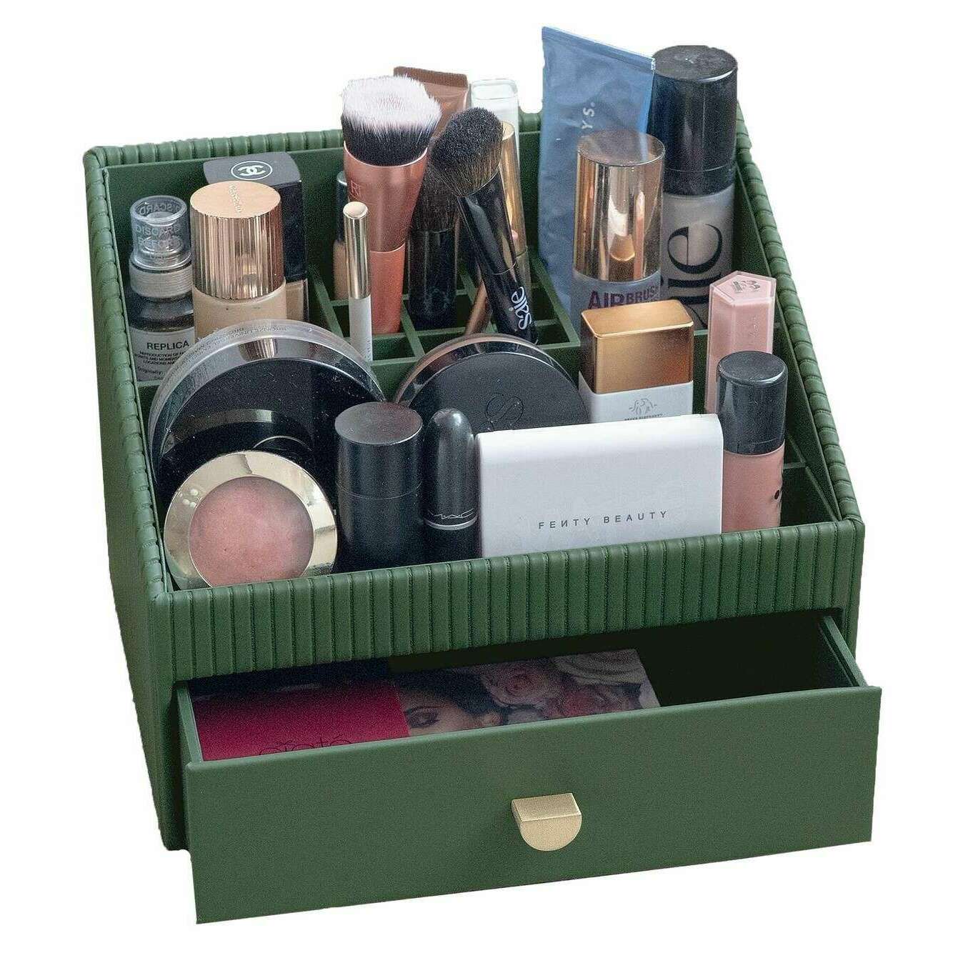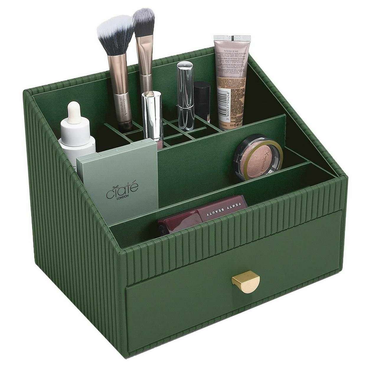 Questo classico organizer per trucchi da donna del marchio Stackers è realizzato in ecopelle e pvc ed è presentato in verde. Misura 19 cm (altezza) x 25 cm (larghezza) x 18 cm (profondità). Tutti gli organizzatori per il trucco sono completi di confezione impilatrice. L'organizer per trucchi classico Stackers - Verde smeraldo è dotato di scomparti multipli per i tuoi prodotti per il trucco o la cura della pelle. Questo bellissimo organizer per trucchi verde a coste ha un design per prodotti più grandi, perfetto per mantenerli organizzati e risparmiare spazio!