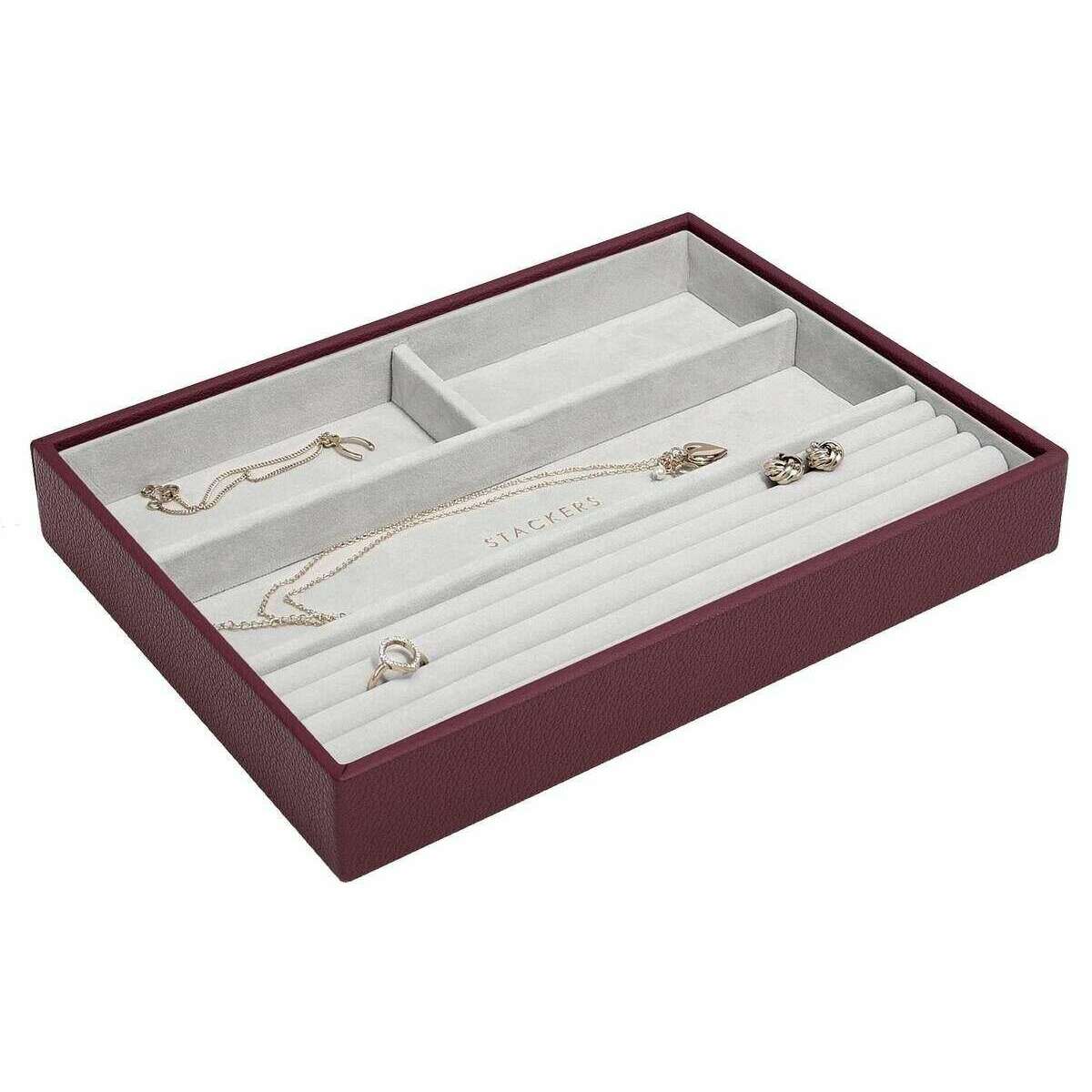 Perfetto per le donne è questo classico braccialetto ad anello Stackers bordeaux, anch'esso realizzato in ecopelle e velluto. Misura 3,7 cm (altezza) x 25 cm (larghezza) x 18 cm (profondità). Tutti gli astucci per gioielli sono completi di confezione impilabile. Lo strato per braccialetti ad anello classico Stackers - Borgogna presenta più sezioni per tutti i tuoi anelli e braccialetti. Questo bellissimo portagioielli classico bordeaux è perfetto per tenersi organizzati!