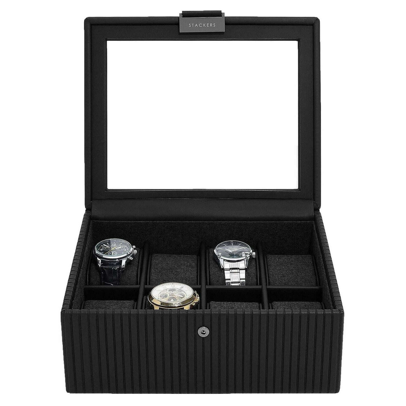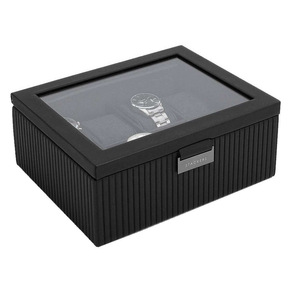 Scatola per orologi scanalata Stackers da 8 pezzi - nera