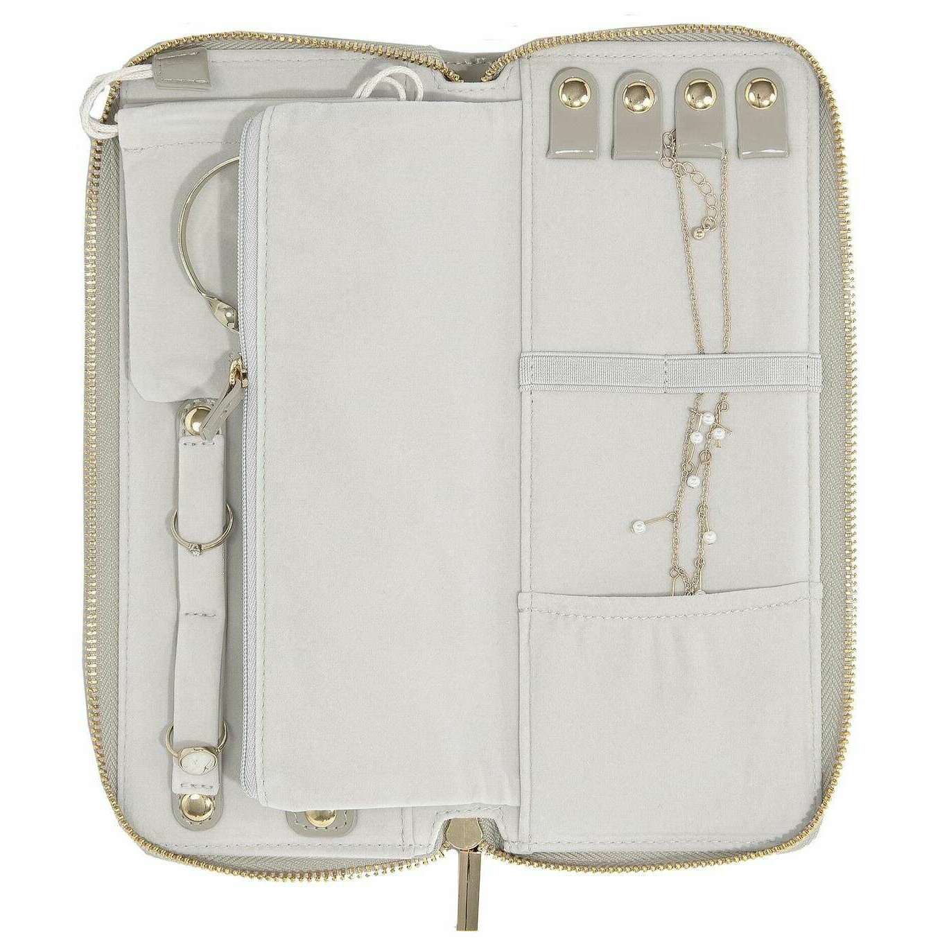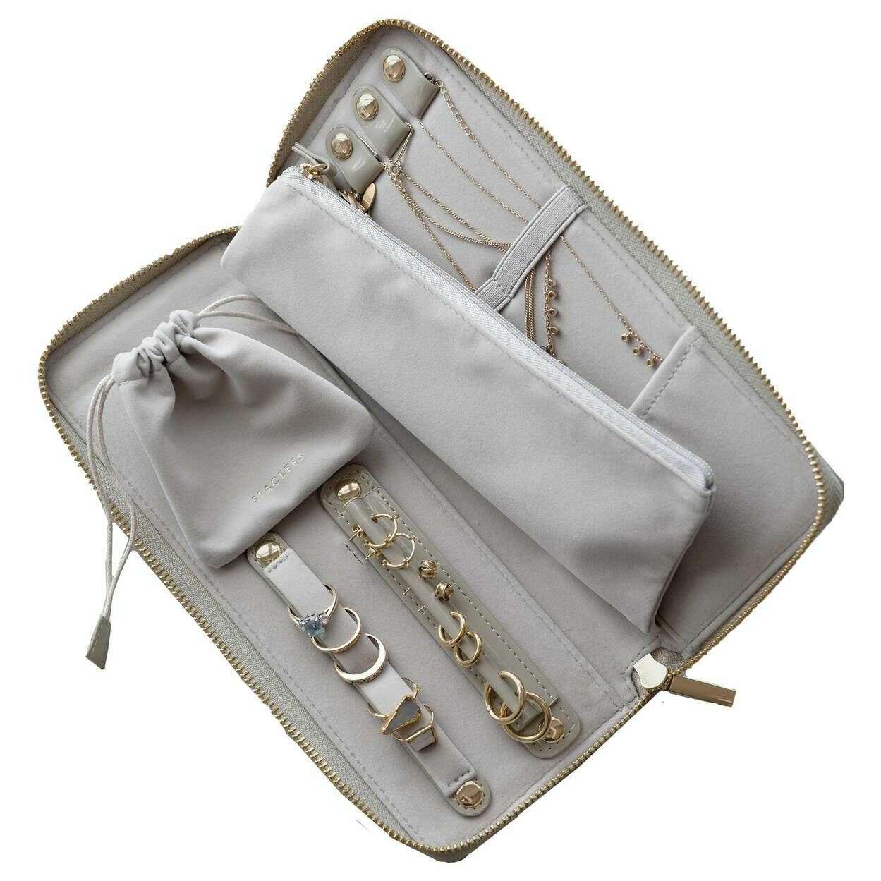 Ti presentiamo questo portagioielli da donna di Stackers, è realizzato in finta pelle in un colore grigio stucco brevettato. Misura 3 cm (altezza) x 24,5 cm (larghezza) x 10,3 cm (profondità). Tutti gli astucci per gioielli sono completi di confezione impilabile. Il rotolo di gioielli Stackers - Patent Putty Grey è un must quando sei in movimento! Questo rotolo di gioielli grigio è perfetto per viaggiare con gioielli e include una chiusura con cerniera per una maggiore sicurezza.