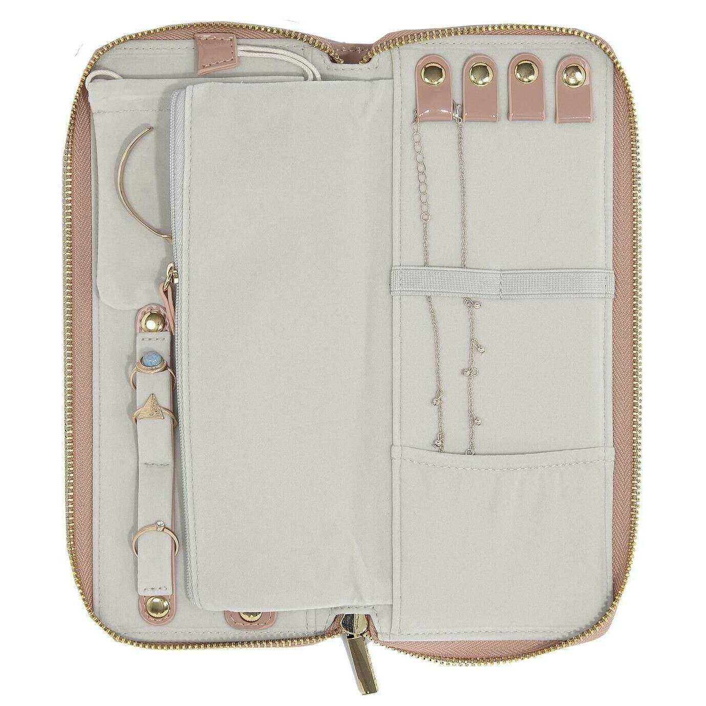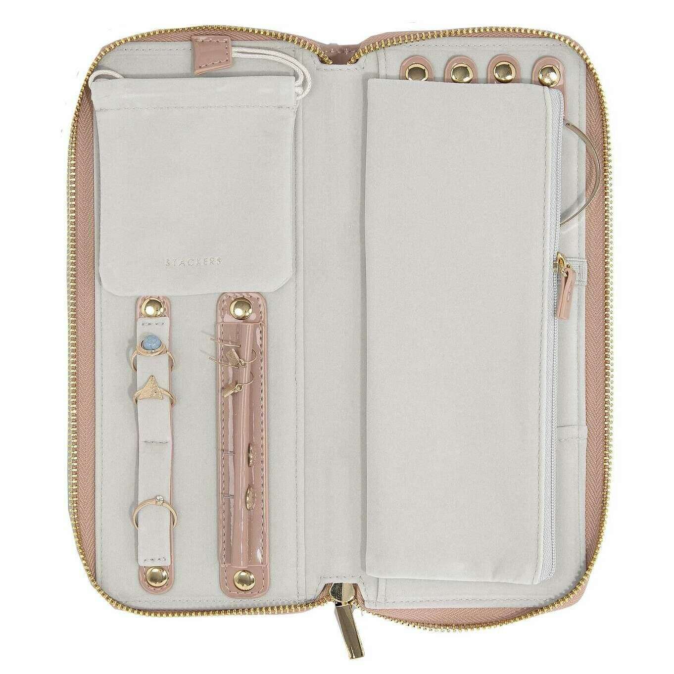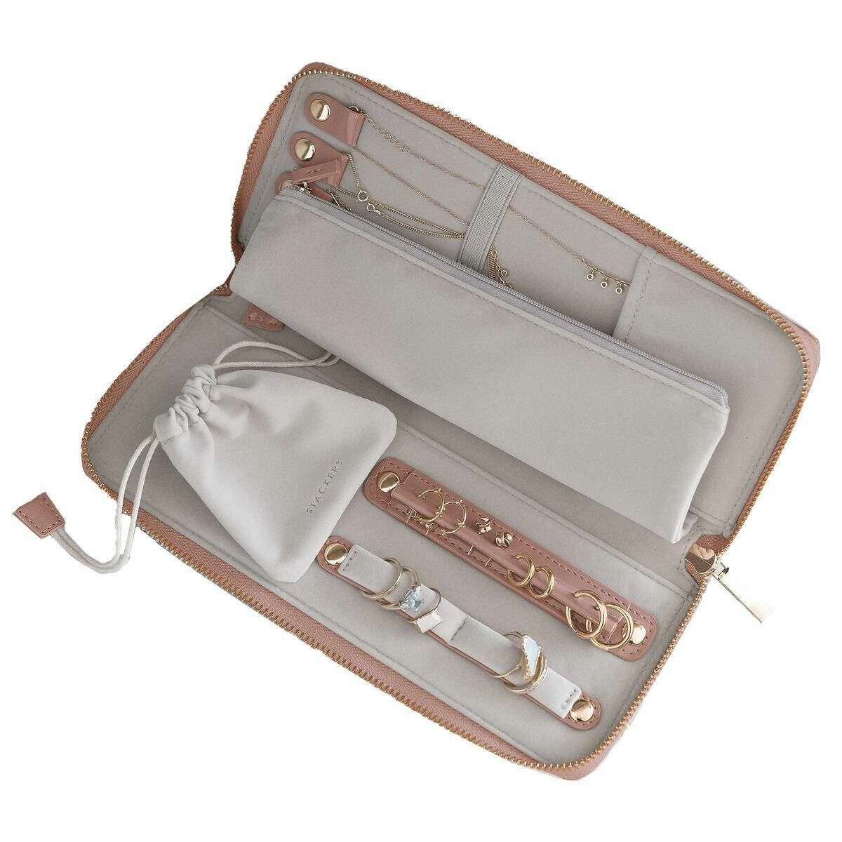 Questo rotolo di gioielli da donna è realizzato dalla marca Stackers in colore rosa ed è realizzato in finta pelle. Misura 3 cm (altezza) x 24,5 cm (larghezza) x 10,3 cm (profondità). Tutti gli astucci per gioielli sono completi di confezione impilabile. Il rotolo di gioielli Stackers - Patent Rose Pink è un must da avere quando sei in movimento! Questo rotolo di gioielli rosa è perfetto per viaggiare con gioielli e include una chiusura con cerniera per una maggiore sicurezza.