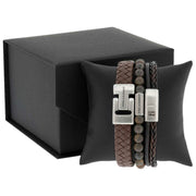 Set regalo con bracciale triplo Premium Steel & Barnett - marrone
