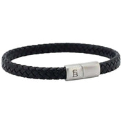 Bracciale in pelle intrecciata elegante Steel & Barnett Riley - Nero