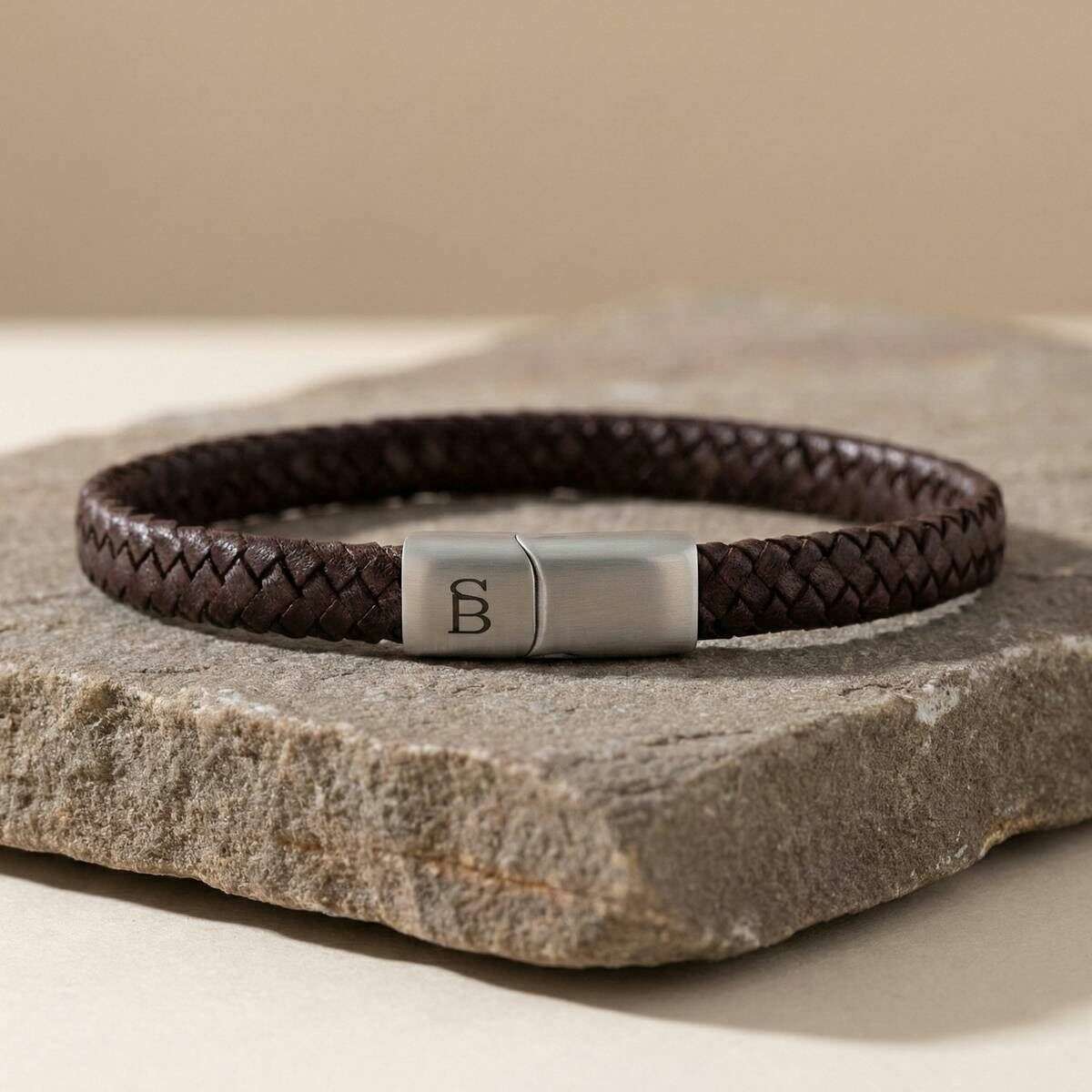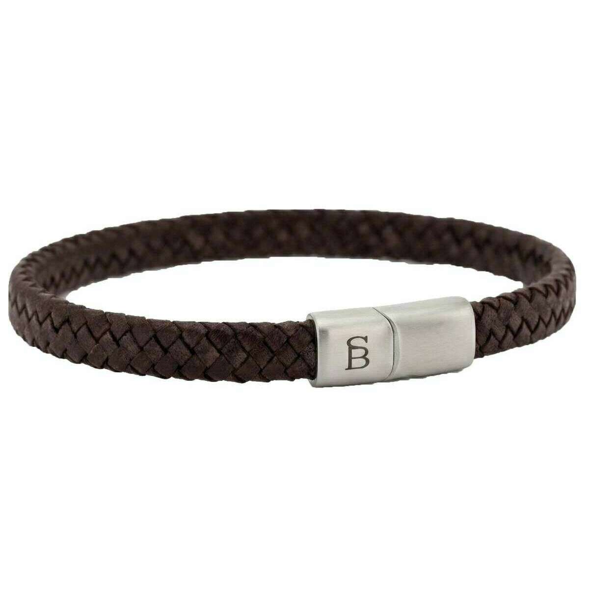 Bracciale Steel & Barnett Riley in pelle intrecciata elegante - Marrone vintage