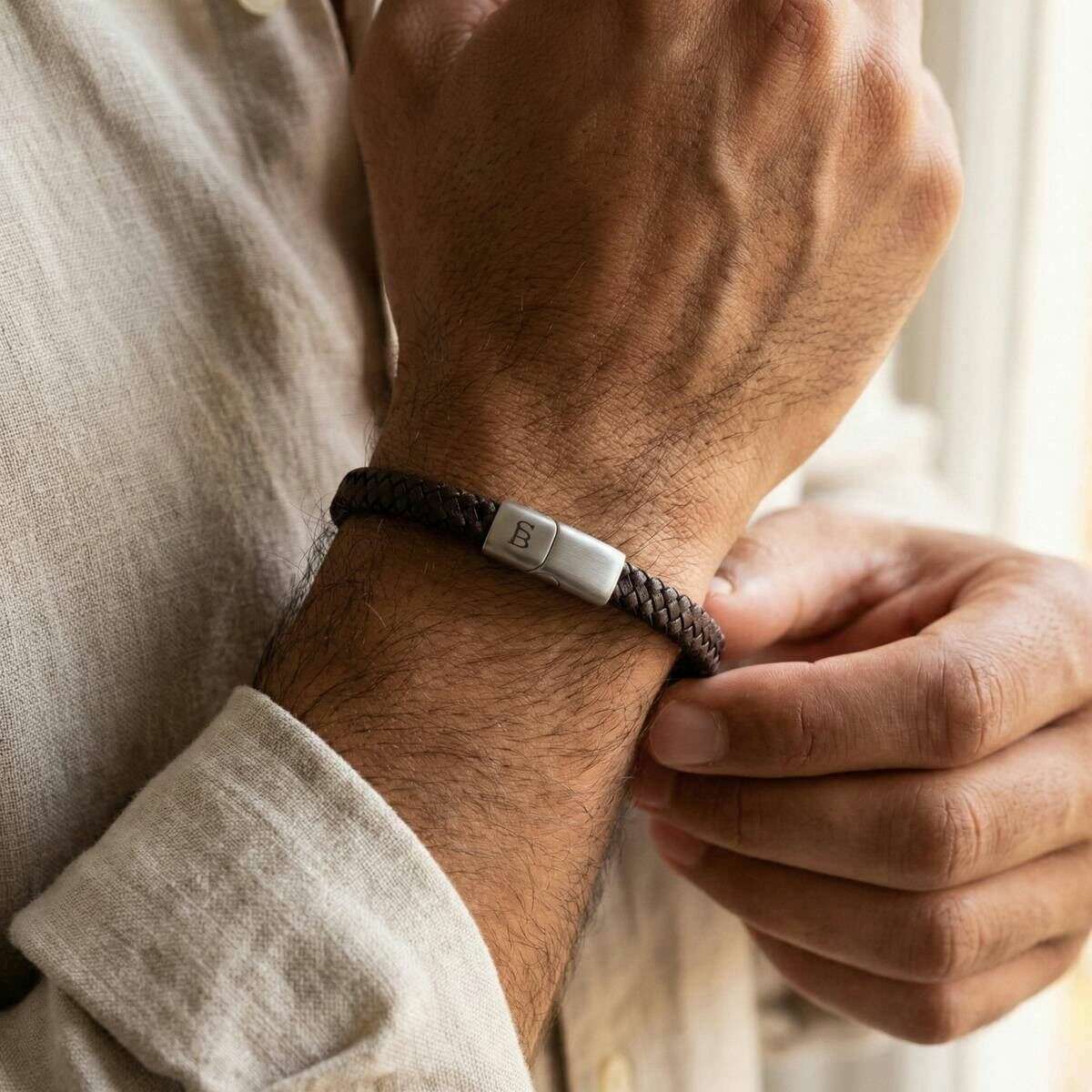 Il designer Steel & Barnett ti ha portato questo bracciale da uomo in pelle di vacchetta al 100% e acciaio inossidabile utilizzando toni marroni vintage. Tutti i bracciali sono completi di confezione in acciaio e barnett. Il bracciale Steel & Barnett Riley Sleek intrecciato in pelle - Marrone vintage è realizzato per incarnare forza e affidabilità, offrendo un accessorio raffinato adatto a qualsiasi collezione. Realizzato al 100% in vera pelle di vacchetta, il suo profilo sottile di 6 mm presenta un design elegantemente intrecciato che offre una raffinata raffinatezza senza sacrificare la durata. Una chiusura in acciaio spazzolato, realizzata in acciaio inossidabile 316L, offre un'eccezionale resistenza all'usura e alla corrosione, mentre la sua chiusura magnetica garantisce una vestibilità sicura e confortevole attorno al polso. Progettato con cura ed elegante senza sforzo, questo braccialetto è la scelta ideale per chi cerca un accessorio in pelle minimalista ma distinto che valorizza l'abbigliamento quotidiano con sobria eleganza.