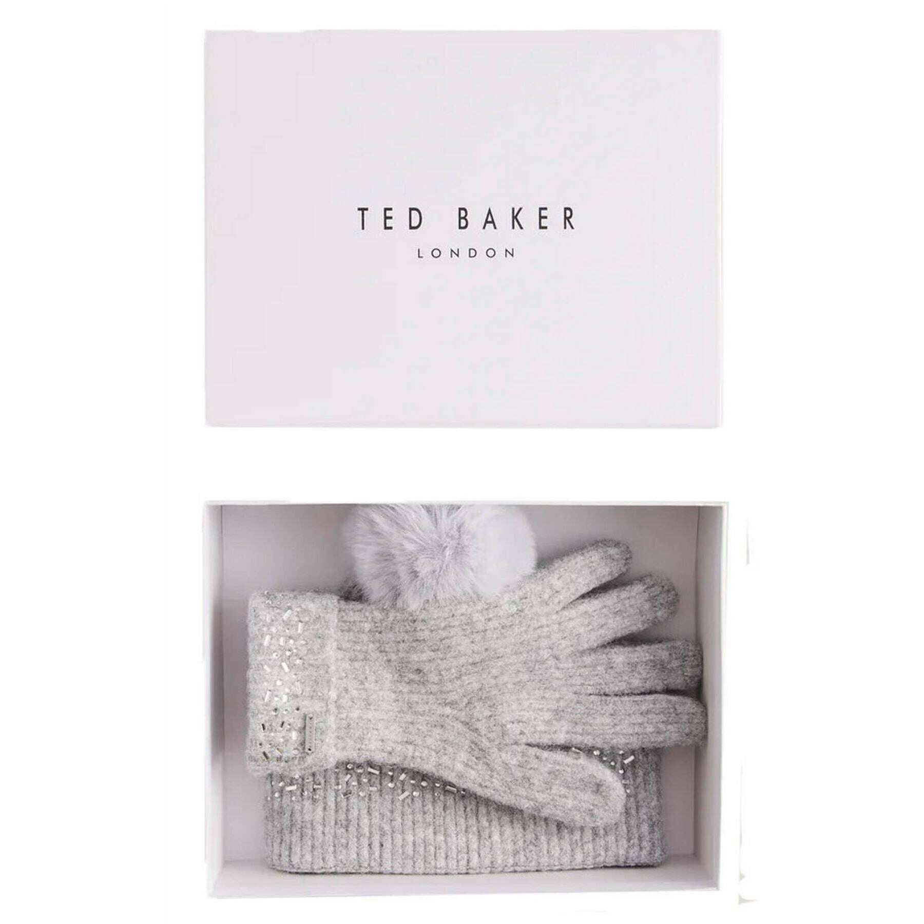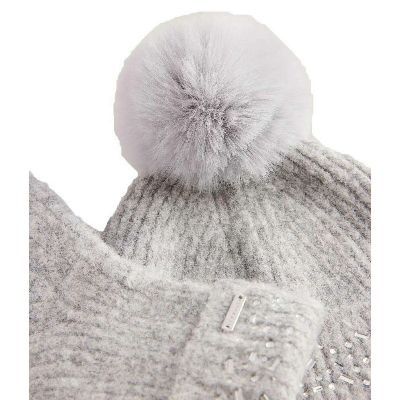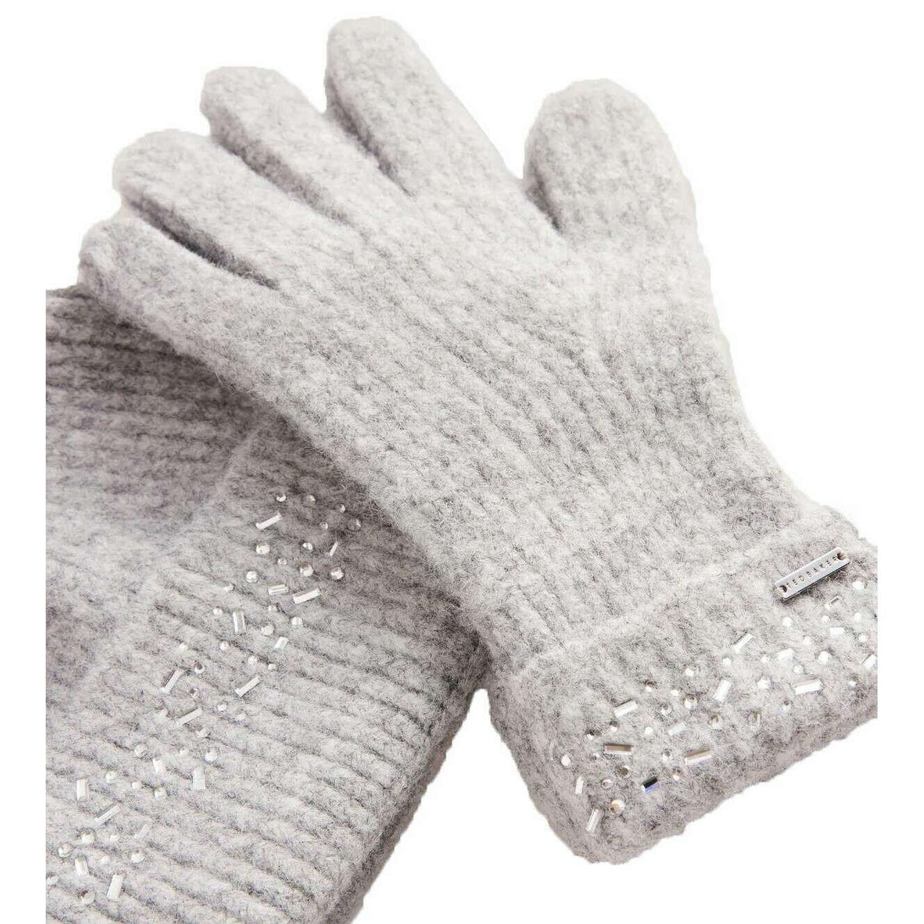 Ted Baker Keriis Rhinestone Cappello a maglia e guanti set - Grigio