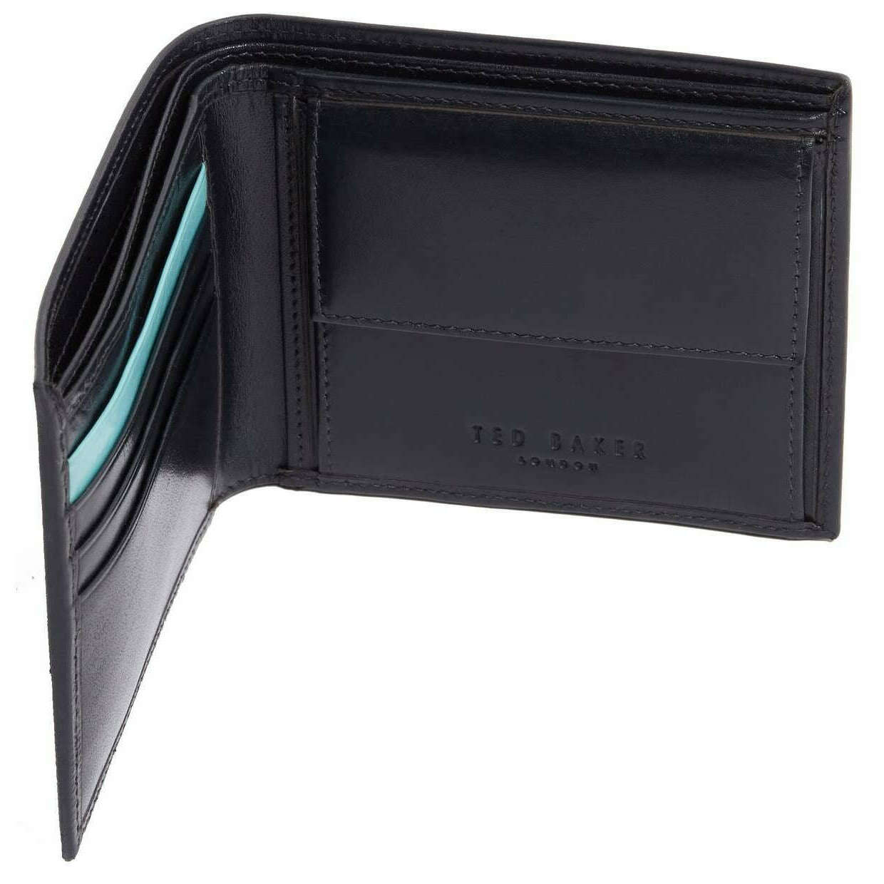Il designer Ted Baker ti ha proposto questo portafoglio da uomo in pelle bovina al 100% utilizzando i toni del blu scuro. Misura 9 cm (altezza) x 11 cm (larghezza) x 2 cm (profondità). Tutti i portafogli vengono forniti completi di confezione regalo Ted Baker. Il portafoglio bifold ad angolo in metallo Ted Baker Prugs - Navy presenta una finitura in pelle lucida che offre raffinatezza e presenta un angolo con texture in rilievo con un logo in lamina sopra. Si apre per offrire 4 scomparti per carte, una tasca portamonete con chiusura con bottone a pressione e un doppio scomparto per banconote, offrendoti tanto spazio per tutti i tuoi oggetti essenziali.