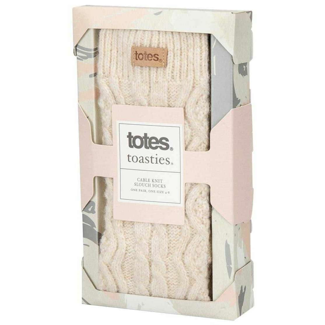 Totes Toasties Calzini morbidi a pantofola lavorati a trecce - Crema di avena