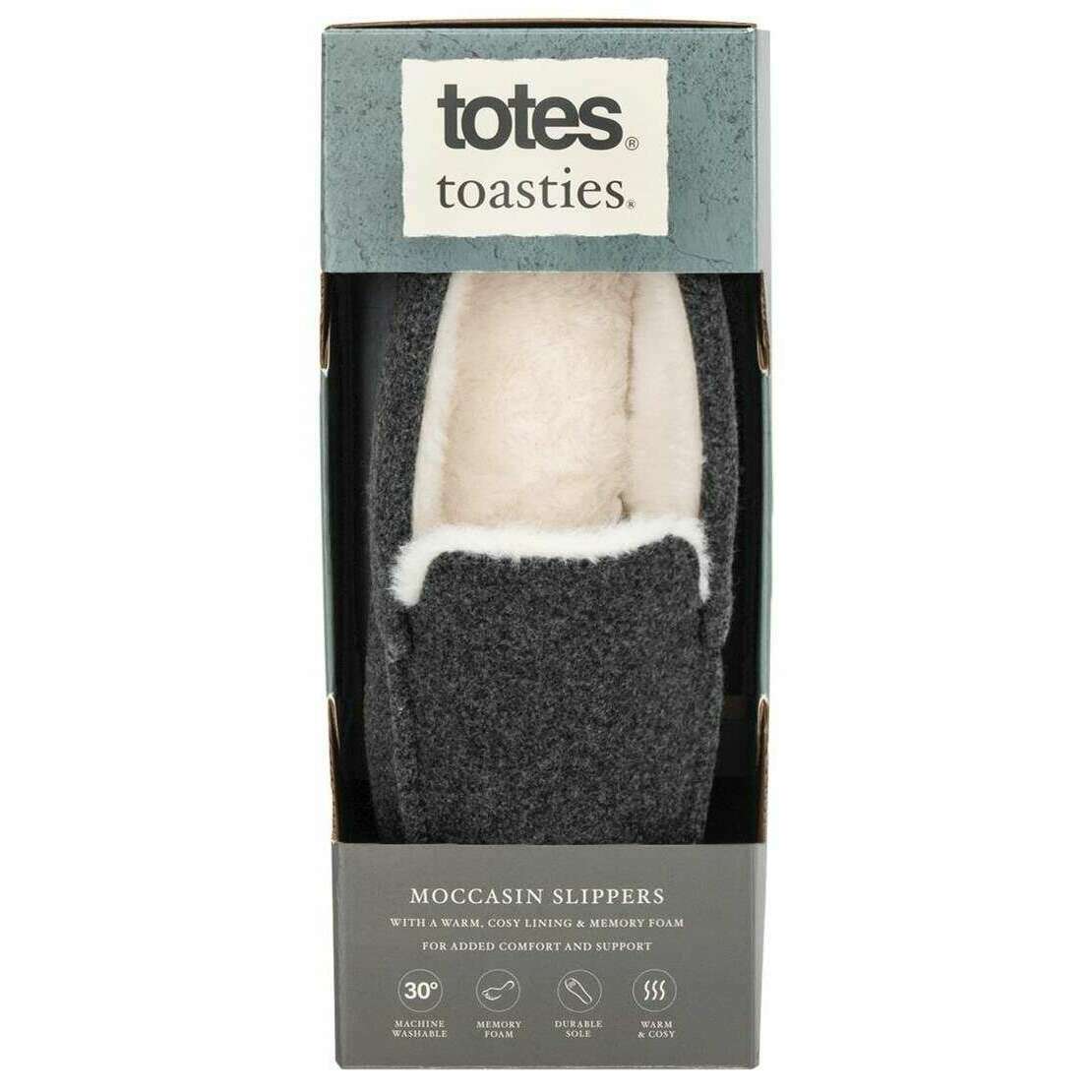 Le pantofole di moccasina felici da uomo da parte delle toast dei marchi sono realizzate dall'80% di poliestere e al 20% di cotone, fodera al 100% poliestere e suola TPR tessile e sono mostrate in grigio. Anche le pantofole grigie sono progettate in un motivo semplice, si consiglia di lavarsi a mano solo per mantenere queste pantofole in buone condizioni. Tutte le pantofole sono complete di imballaggi Totes Toasties. Le box toasties sentivano pantofole di moccasina: il grigio presenta un classico design di moccasina che diventerà un'usura frequente in qualsiasi collezione di signori. Riqualificati con pelliccia finta assicura che i tuoi piedi siano mantenuti belli e tosti mentre vagano per la casa con una memory foam aggiunta e una suola durevole per comfort e supporto. Questi diventeranno la tua coppia di tutti i giorni in cui scivolerai dopo una lunga giornata di lavoro.