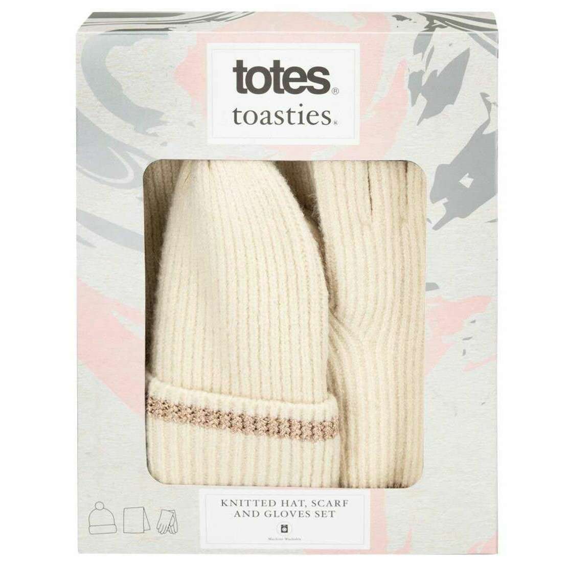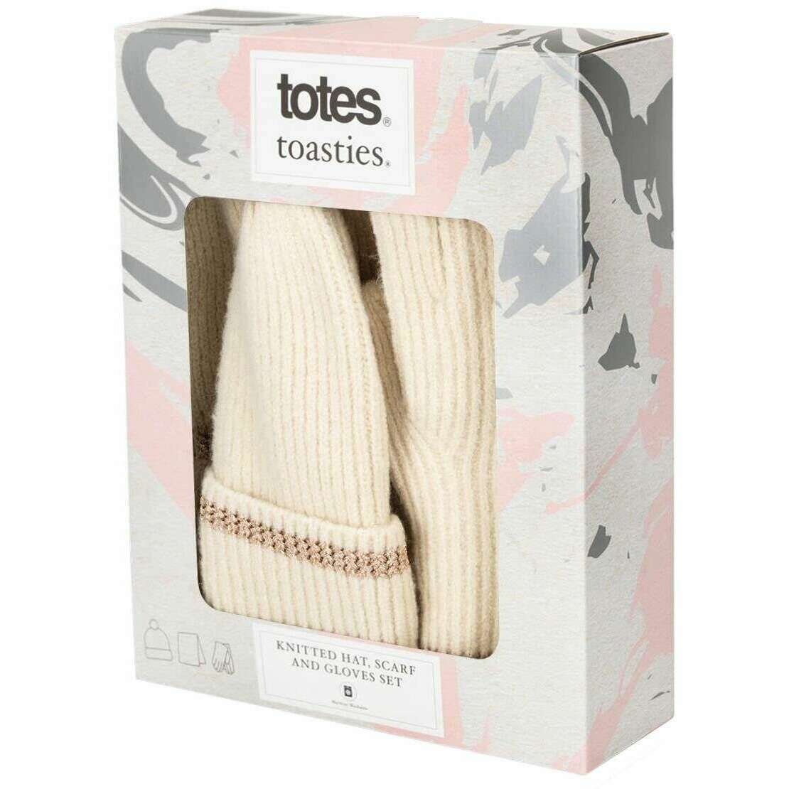 Totes Toasties Set regalo con cappello, sciarpa e guanti lavorati a maglia - Crema d'avena