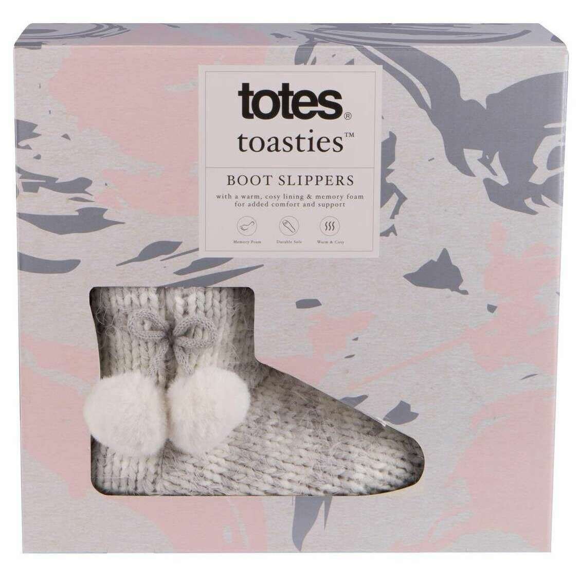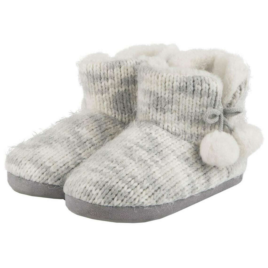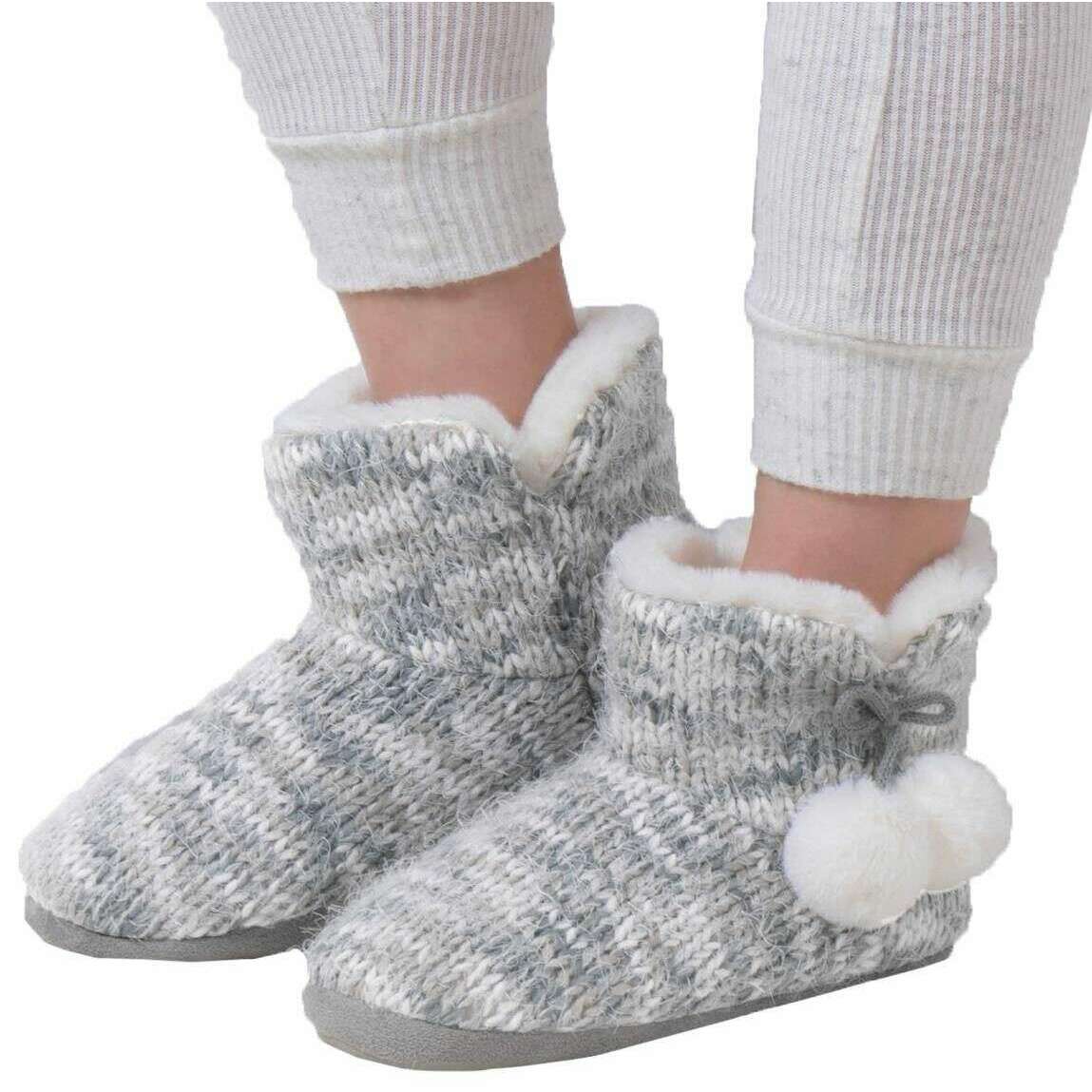 Le pantofole per stivali a maglia per tinture per spaziali da donna dalle toast ai boghes sono realizzate con poliestere del 60%, 40% acrilico e pelle scamosciata sintetica e sono mostrate in grigio. Anche le pantofole grigie sono progettate in un motivo a 2 toni, tutte le pantofole sono complete di imballaggi toast-toasties. Le pannelli di avvio a maglia per tinture per tinture per tinture per toast - grigio si abbinerà perfettamente a uno qualsiasi dei tuoi PJ invernali per un look completo completo per rilassarsi dopo una lunga giornata fredda. La lunghezza dello stivale non solo mantiene i piedi accoglienti, ma anche le caviglie con il rivestimento in pelliccia a fatica morbida e calda, mentre la memory foam aggiunta garantisce un comfort ottimale mentre cammina per la casa. Completando questo look è il dettaglio femminile Pom Pom.