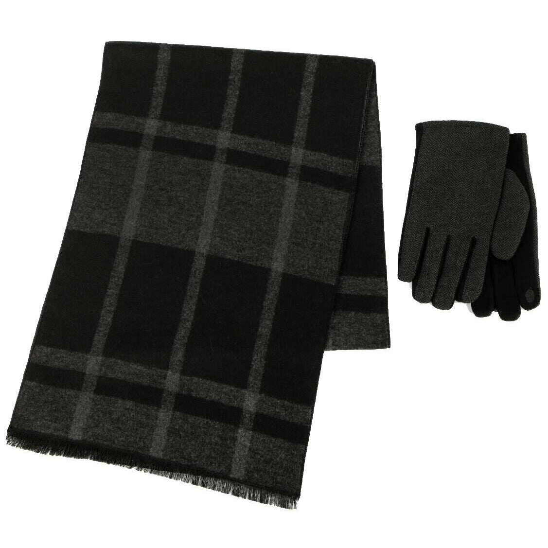 Set regalo con sciarpa in misto lana a quadri e guanti foderati termici Totes Toasties - Nero