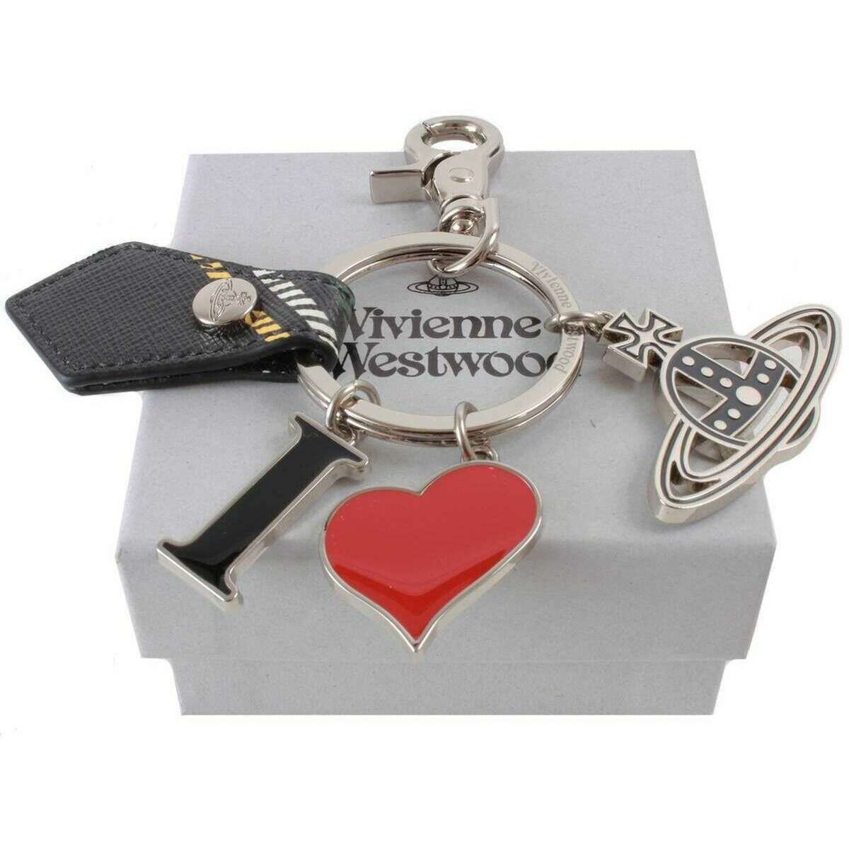 Vivienne Westwood Chelsea Tartan I Love Orb Keyring - nero/argento