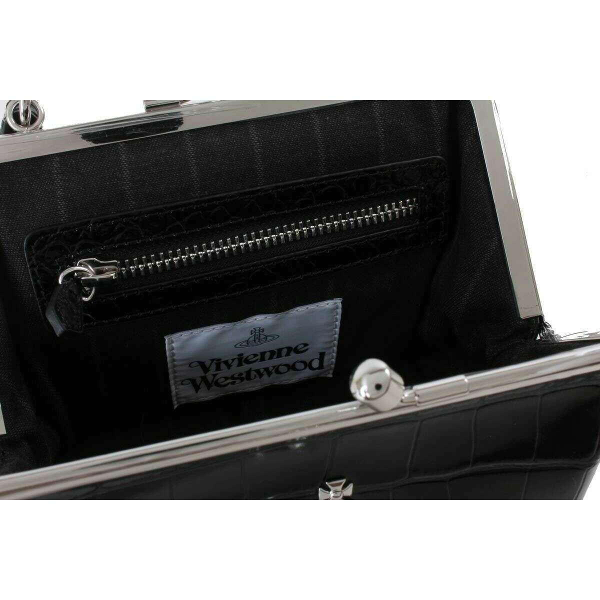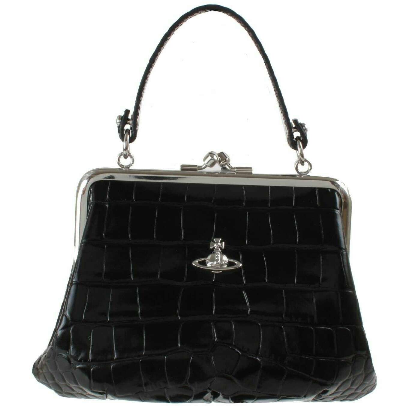 Borsa Vivienne Westwood con cornice Granny in coccodrillo goffrato - Nera