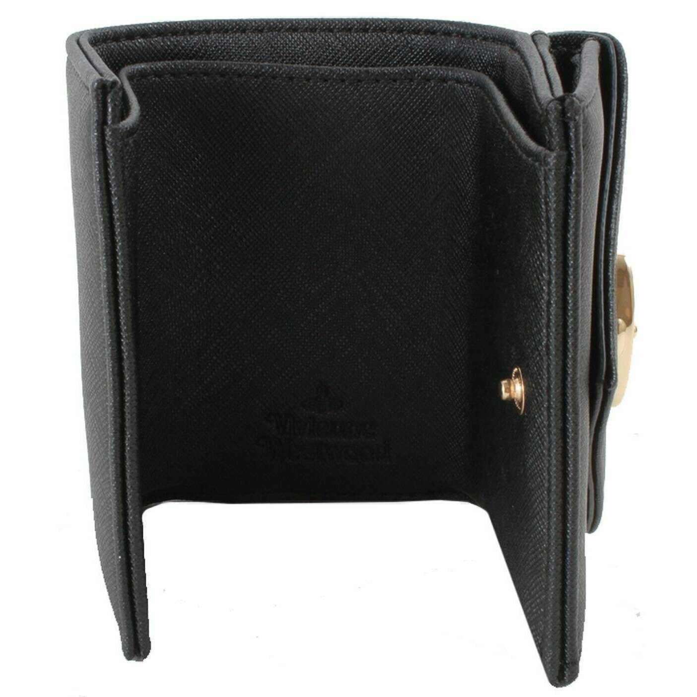 Perfetto per le donne è questo portafoglio bifold di busta nera Vivienne Westwood, è anche realizzato con poliuretano al 65% e 35% di cotone. Misura 10 cm (altezza) x 6,5 cm (larghezza) x 2 cm (profondità). Tutte le borse vengono complete in una confezione regalo Vivienne Westwood. Il portafoglio bifold della busta Vivienne Westwood - Black presenta uno splendido design elegante che rende davvero questa borsetta elegante. Offre un compartimento di monete, slot di carte e compartimenti note, tutto il necessario per l'uso quotidiano. La chiusura del perno di stampa e il design trifoglio assicurano che i tuoi oggetti di valore siano conservati in modo sicuro. Finito con il popolare motivo di sfera di linee sottili sul davanti è un must per la tua collezione.