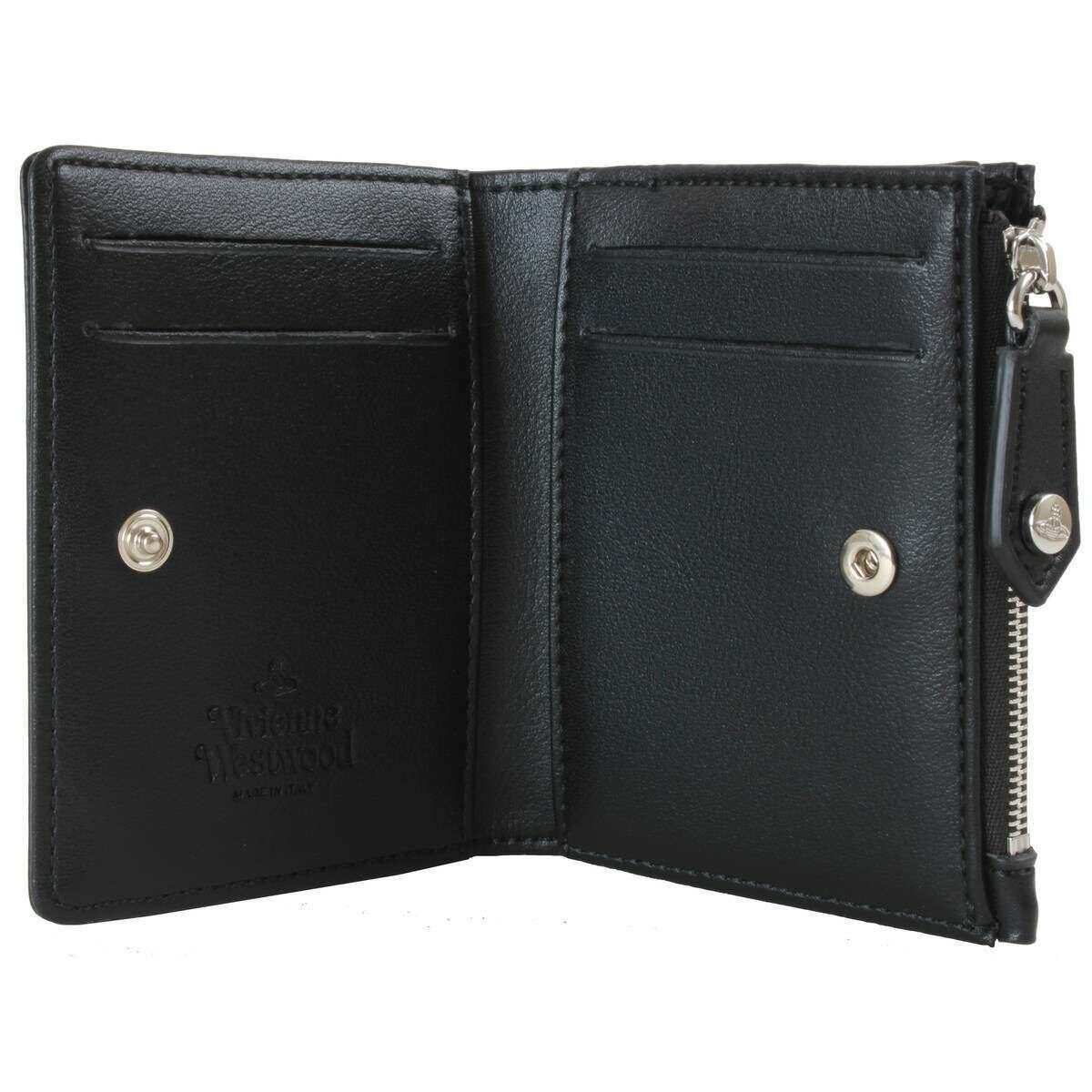 Questo portacarte sottile da donna con patta è stato realizzato al 100% in poliestere, presentato in un colore nero ed è del marchio Vivienne Westwood. Misura 9 cm (altezza) x 10,5 cm (larghezza) x 2,5 cm (profondità). Tutte le borse sono complete di confezione Vivienne Westwood. Il porta carte con patta sottile Vivienne Westwood - Nero sarà una splendida borsa per tutti i giorni se desideri un design meno ingombrante che si adatti perfettamente alle tasche e alle borse più piccole senza perdere lo stile. Ha un semplice bottone a pressione per aprire e chiudere la sezione per carte che offre 4 slot per carte e sull'altro lato c'è uno scomparto per monete con cerniera. L'iconica sfera si trova orgogliosamente sul davanti offrendoti il ​​compagno perfetto.