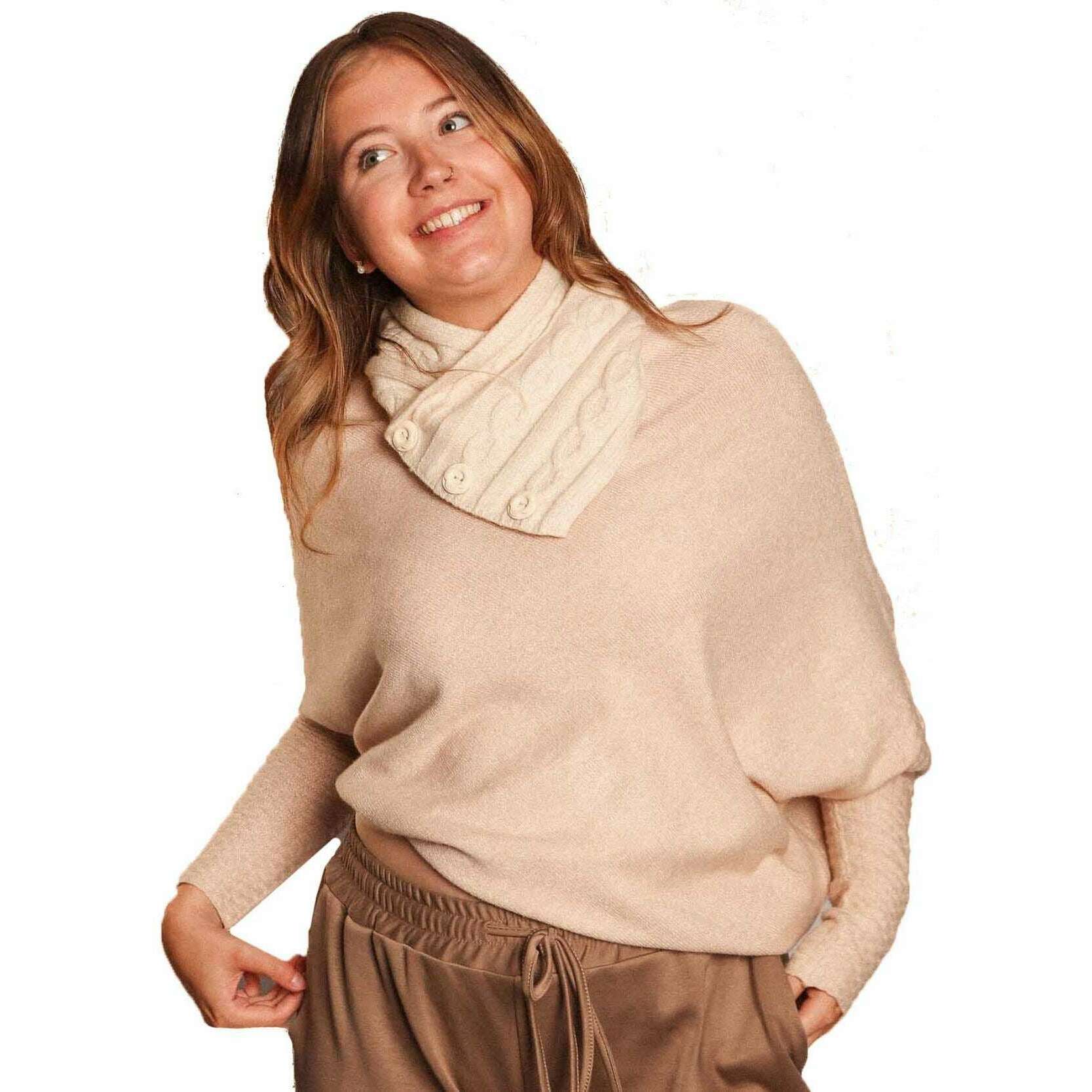 Perfetto per le donne è questo bottone color crema Zelly, anch'esso è realizzato in 36% chinlon, 35% acrilico e 29% viscosa. Misura 78 cm (altezza) x 80 cm (larghezza). Si consiglia di lavare in lavatrice a 30 gradi per mantenere questa sciarpa in buone condizioni. Tutte le sciarpe vengono fornite complete di confezione zelly. Il Zelly Button Tippet - Cream è perfetto se non ti piace il design tradizionale della sciarpa ma stai cercando qualcosa per mantenere il collo caldo durante i mesi più freddi. Semplicistico e pratico, questo capo per il collo garantisce il calore e il comfort offerti da una sciarpa, senza il tessuto in eccesso, rendendolo un capo popolare poiché ha un bell'aspetto e una sensazione favolosa. Aggiungilo al tuo abbigliamento e sarai la bella in una bufera di neve.