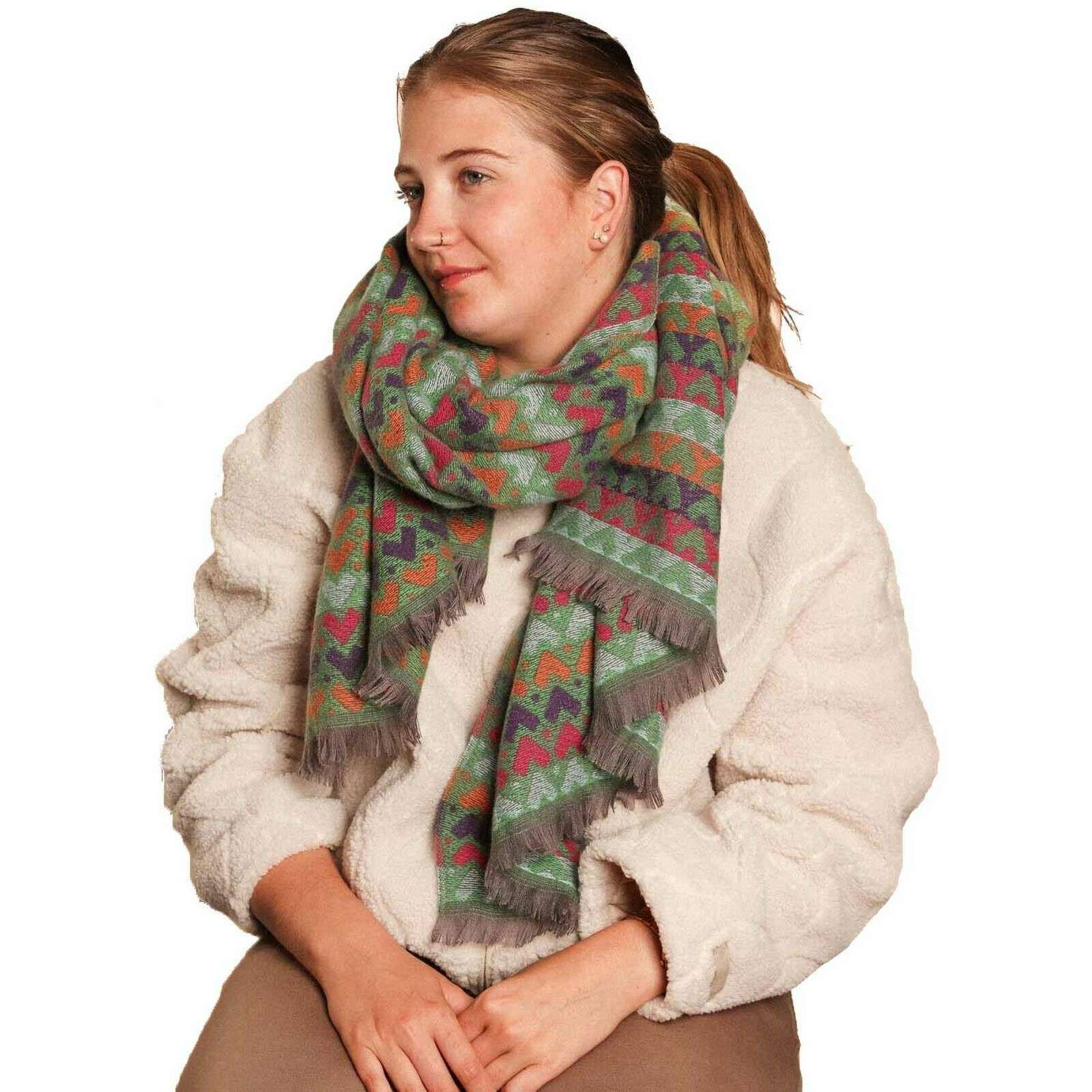 Questa sciarpa invernale da donna con cuori del marchio Zelly è realizzata al 65% in poliestere e al 35% in viscosa ed è presentata in verde. Misura 180 cm (altezza) x 70 cm (larghezza). Si consiglia di lavare in lavatrice a 30 gradi per mantenere questa sciarpa in buone condizioni. Tutte le sciarpe vengono fornite complete di confezione zelly. La sciarpa invernale Zelly Hearts - Verde è una scelta vivace per il tuo guardaroba invernale, facendoti sembrare elegante e alla moda mentre ti avvolge in modo caldo e accogliente. Il bellissimo tessuto morbido ti darà il perfetto abbraccio invernale quando sei in giro durante la stagione fredda e ravviverà il tuo look, senza compromettere la traspirabilità, rendendolo un must per la tua collezione.