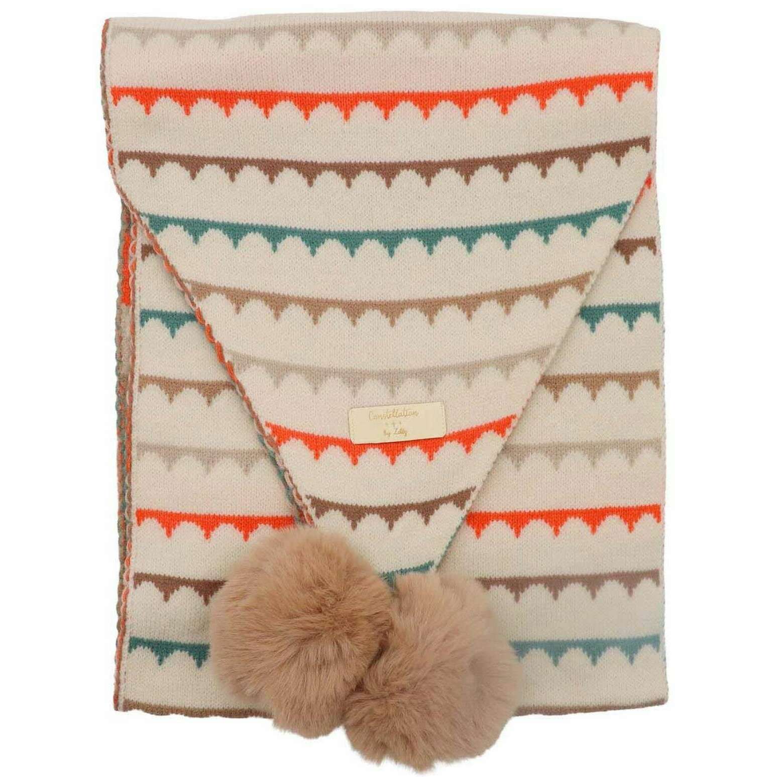 Sciarpa con pompon Zelly Waves - Crema/Arancione/Verde